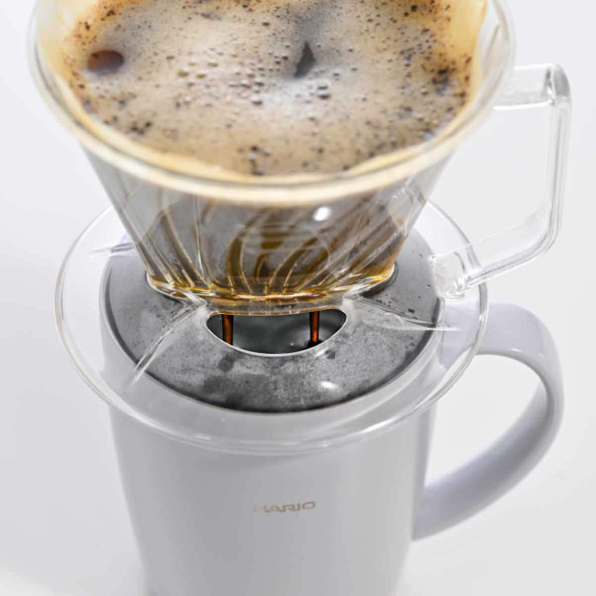 スパイラルリブはコーヒーフィルターとコーヒードリッパーの密着を防ぎ、空気が抜けることでコーヒー粉がしっかり膨らんで全面ろ過できます。また、小さな二つ穴が味の再現性を高め、しっかりと旨味を抽出できます。