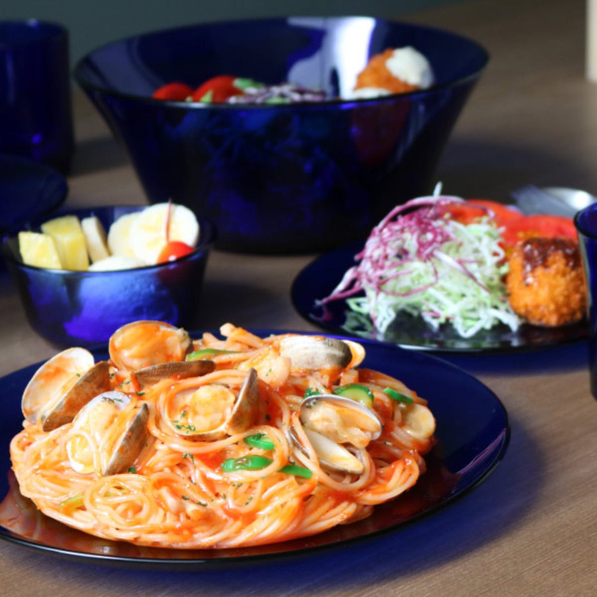 パスタ、オムライス、朝食プレートなど、幅広く使えるサイズです。日常使いはもちろん、来客用としてもおすすめ。透明感のあるガラス素材が、料理をより美しく引き立ててくれます。