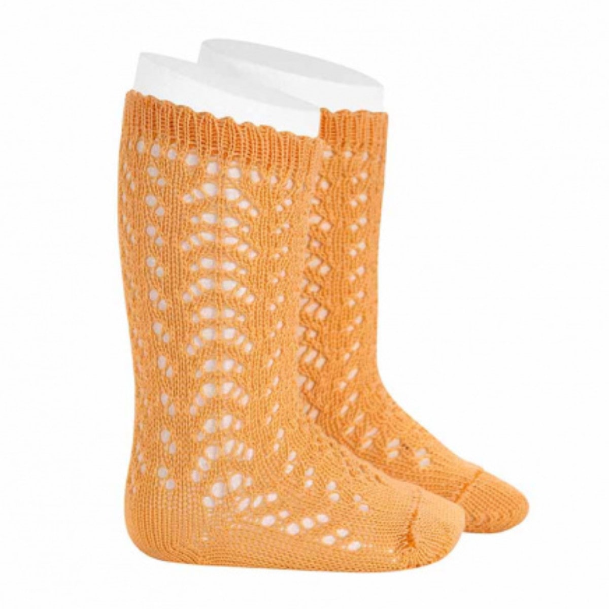 どのテイストのお洋服にも合わせやすいベーシックな透かし編みのデザインです。普段着からお出かけ時まで、足元を可愛く演出してくれるアイテムです。