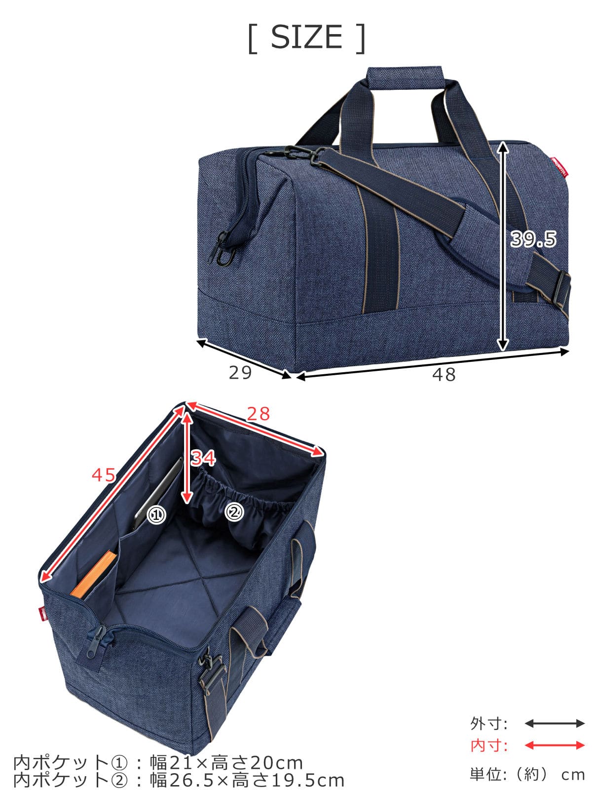 | サイズ | 外寸:約 幅48×奥行29×高さ39.5(cm) 内寸:約 幅45×奥行28×高さ34(cm) ショルダーベルト:最長 約140cm |