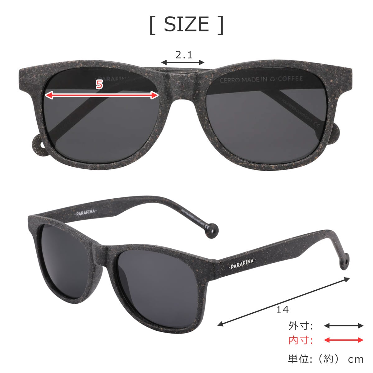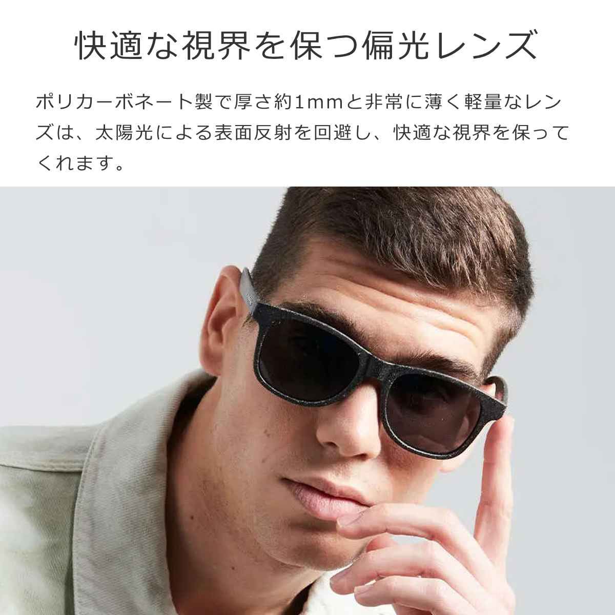 | 材質 | 本体:コーヒー粕、リサイクルPETプラスチック レンズ:ポリカーボネート |