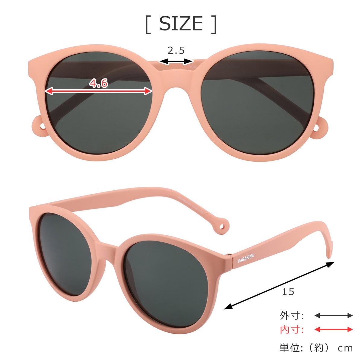 | サイズ | レンズ幅:約 4.6(cm) ブリッジ:約 2.5(cm) テンプル:約 15(cm) |