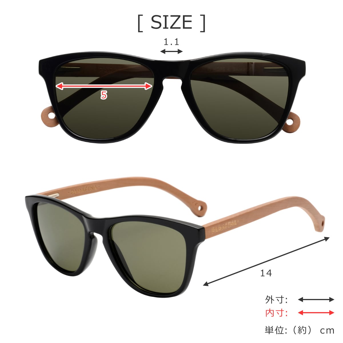 | サイズ | レンズ幅:5cm ブリッジ:1.1cm テンプル:14cm |