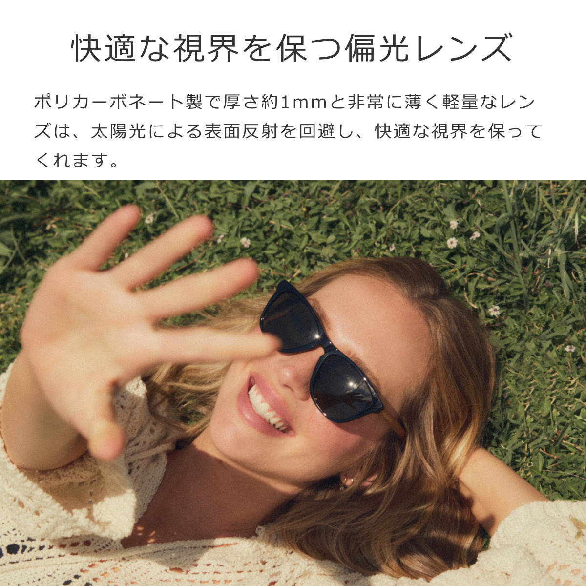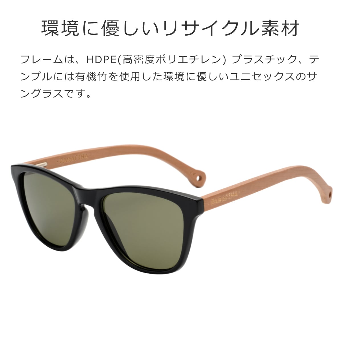 | 材質 | フレーム:100%リサイクルHDPEプラスチック テンプル:有機竹 レンズ:ポリカーボネート |