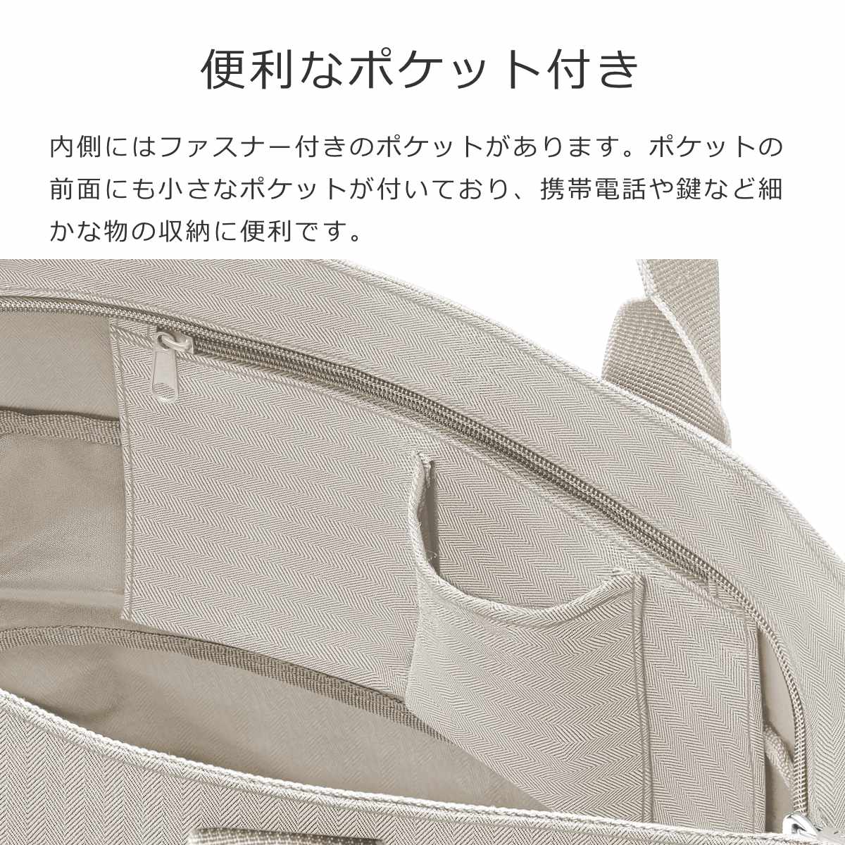 内側には小物の収納に便利なファスナーポケットがあります。ファスナーポケットの前面に小さなポケットが付いており、携帯電話や鍵などをいれておけば、探す手間が省けスムーズに取り出せます。