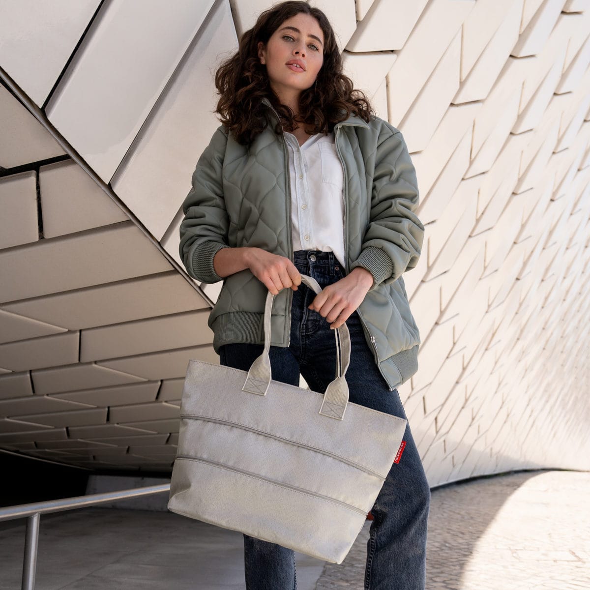 - > トートバッグ 拡張 reisenthel SHOPPER E1 HERRINGBONESAND ( ライゼンタール 拡張できる マイバッグ かばん レディース 大容量 カバン 鞄 バッグ 買い物バッグ マチ付き ショルダーバッグ おしゃれ お出かけ )