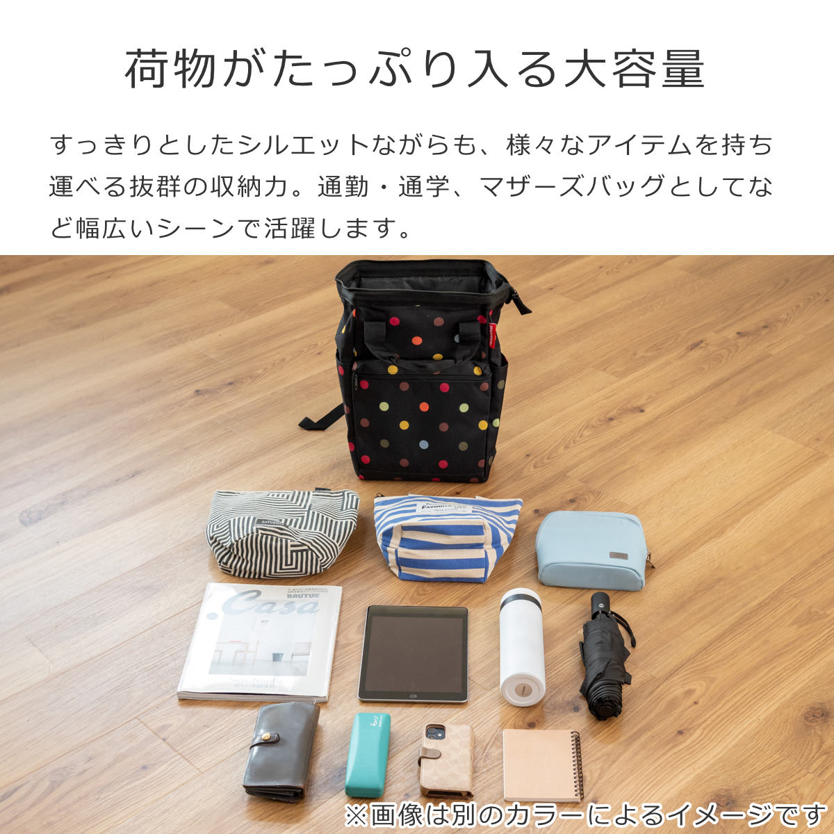 通勤や通学はもちろん、休日のお出かけやレジャーなど幅広い用途で使えるバックパックです。すっきりとしたシルエットながら、たくさん収納できる実用的なアイテムになっています。