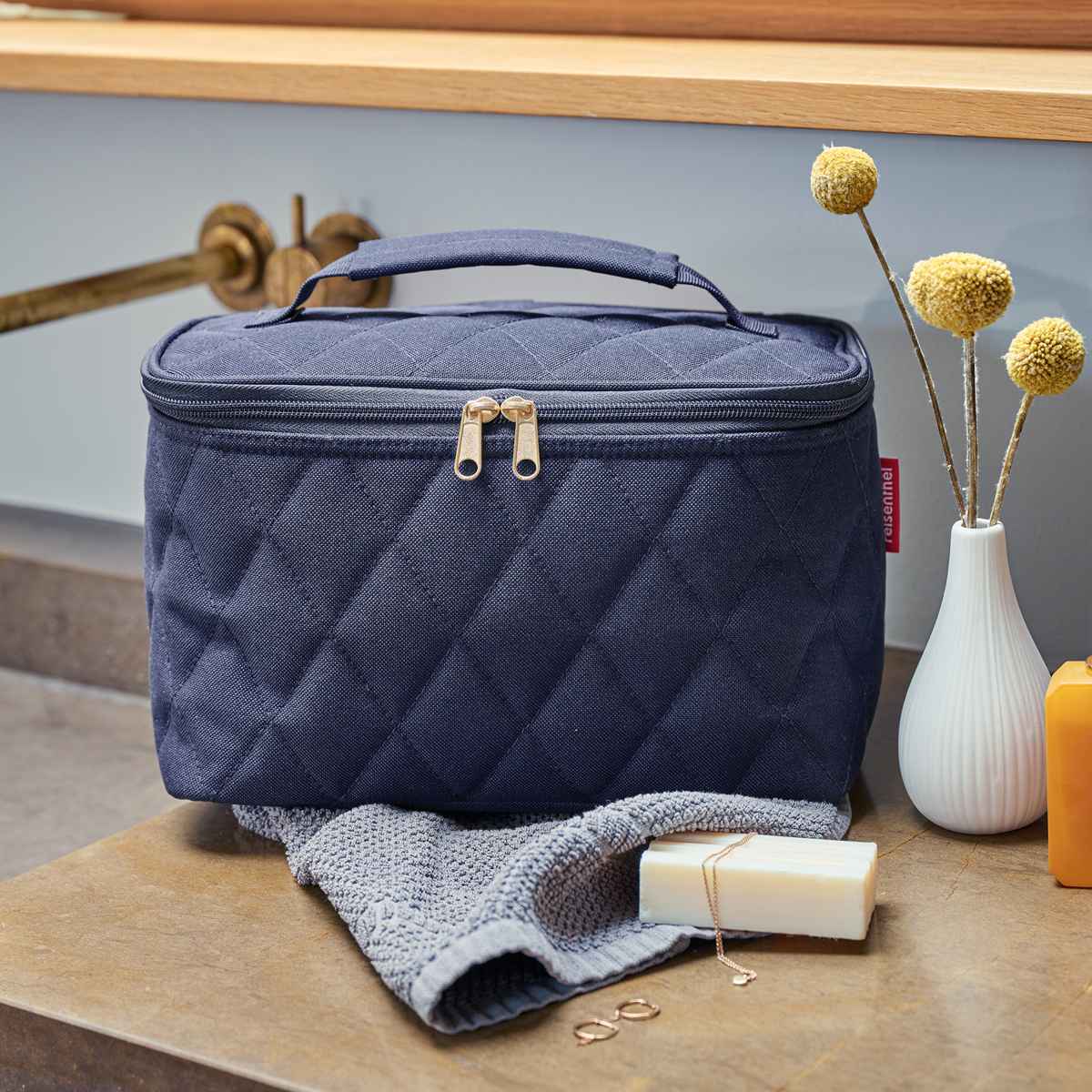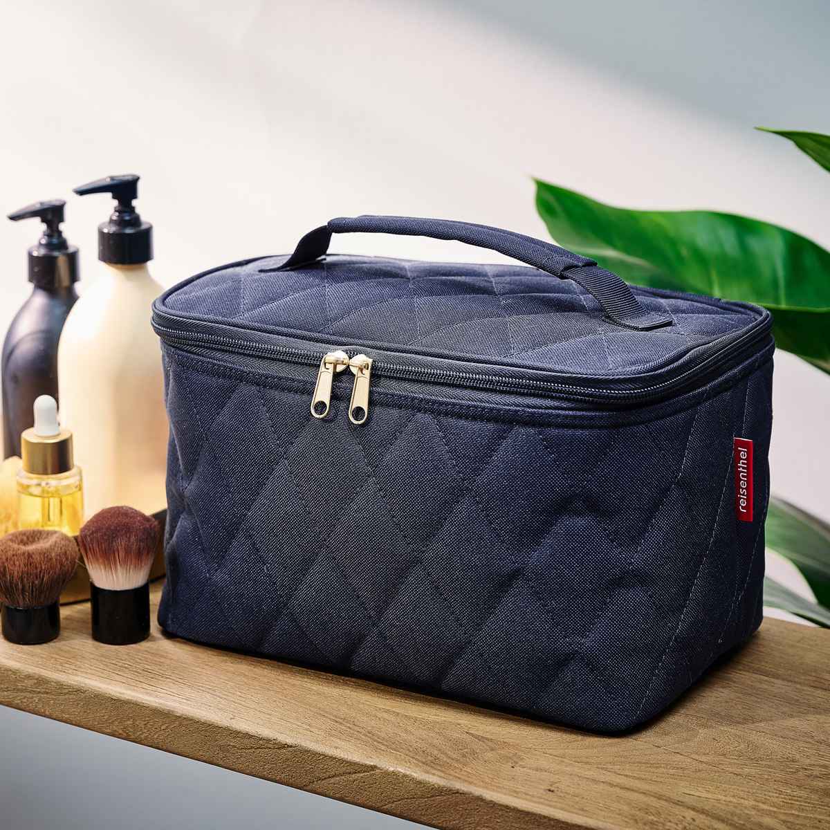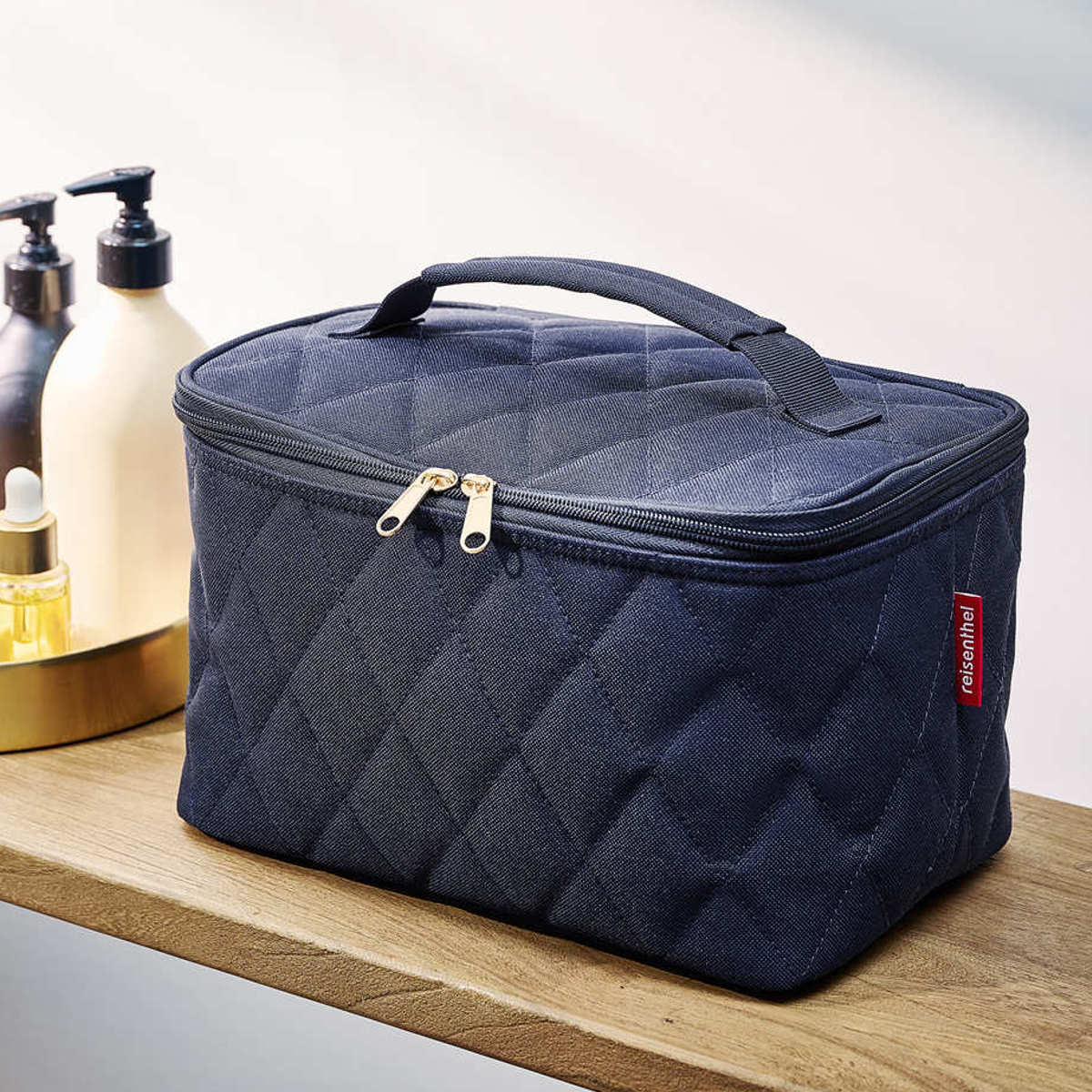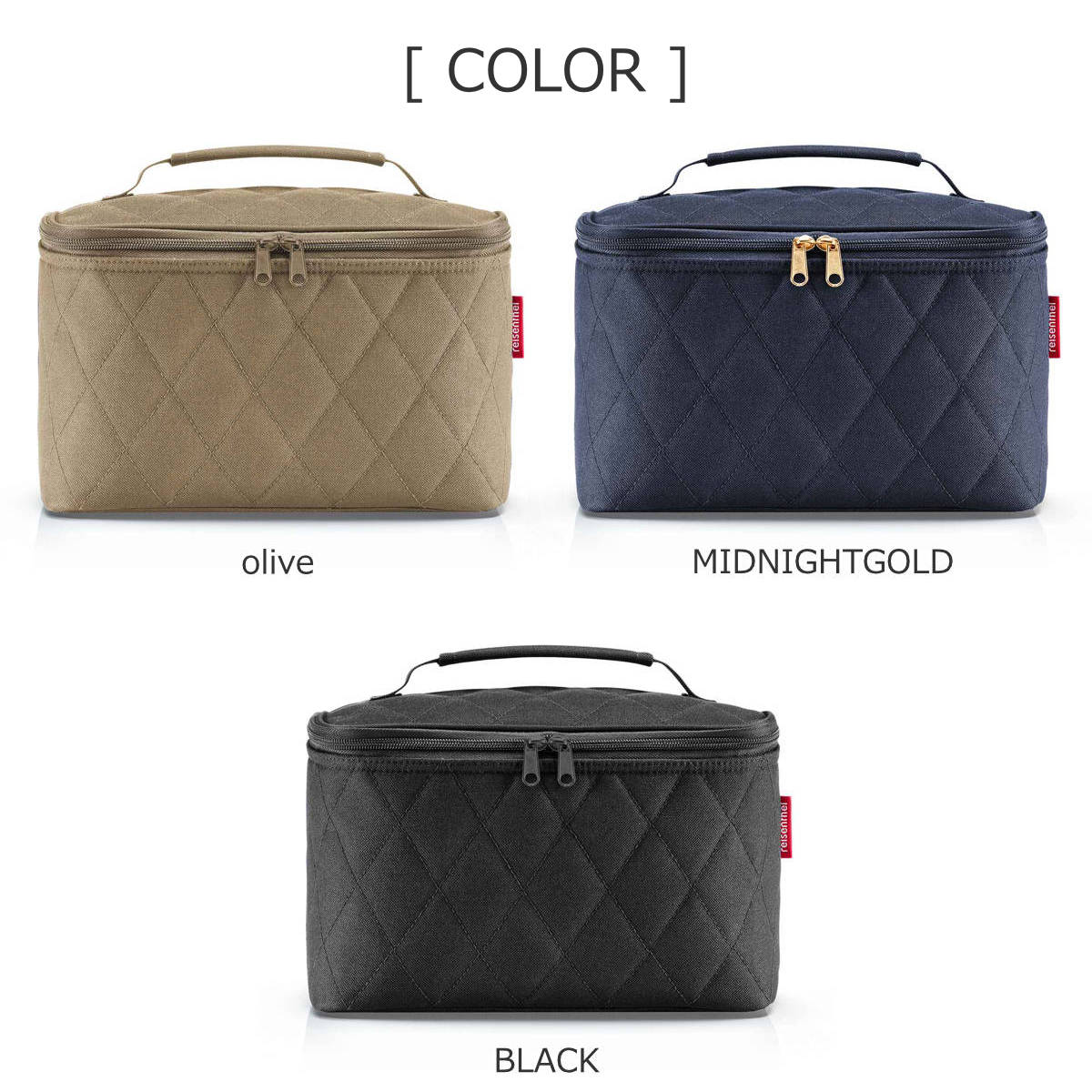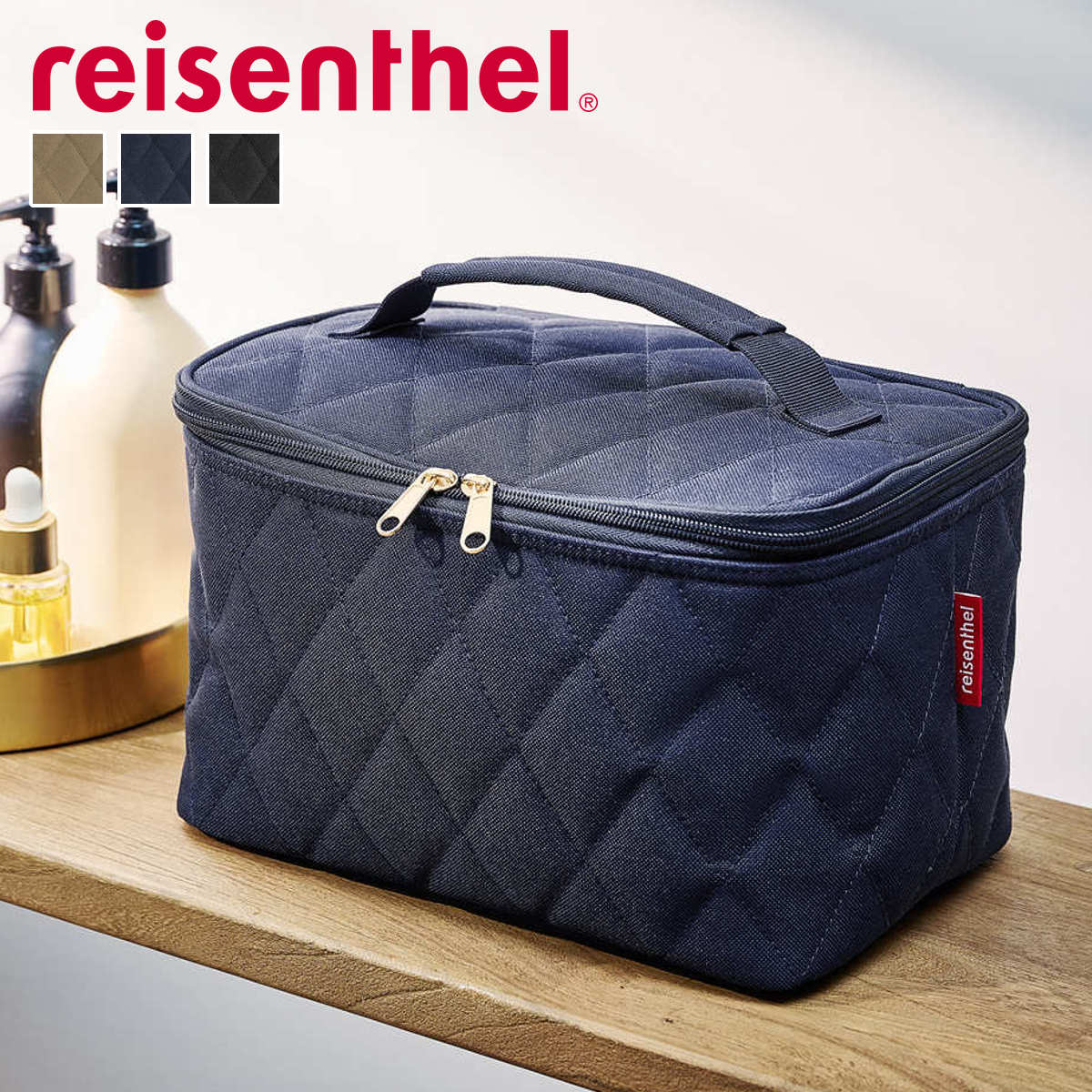 - > 化粧ポーチ ライゼンタール COSMETIC CASE RHOMBUSシリーズ ( reisenthel ポーチ メイクポーチ コスメポーチ バニティ 収納 持ち運び 大容量 仕切り 持ち手付き メイク道具 ファスナー ポケット キルト おしゃれ ) 【olive】