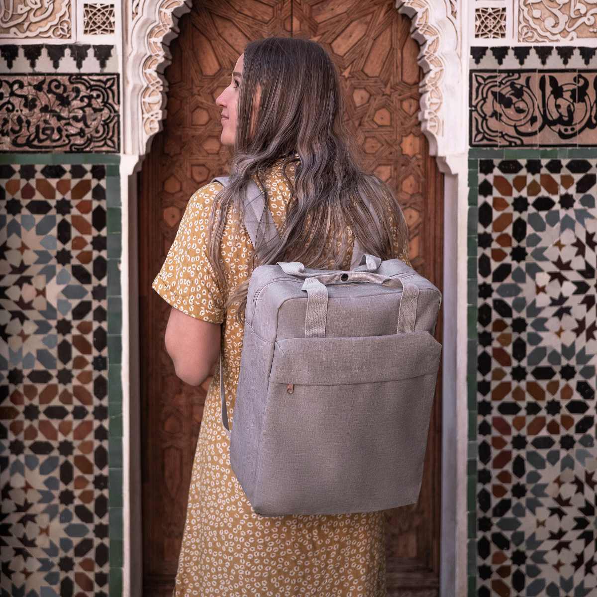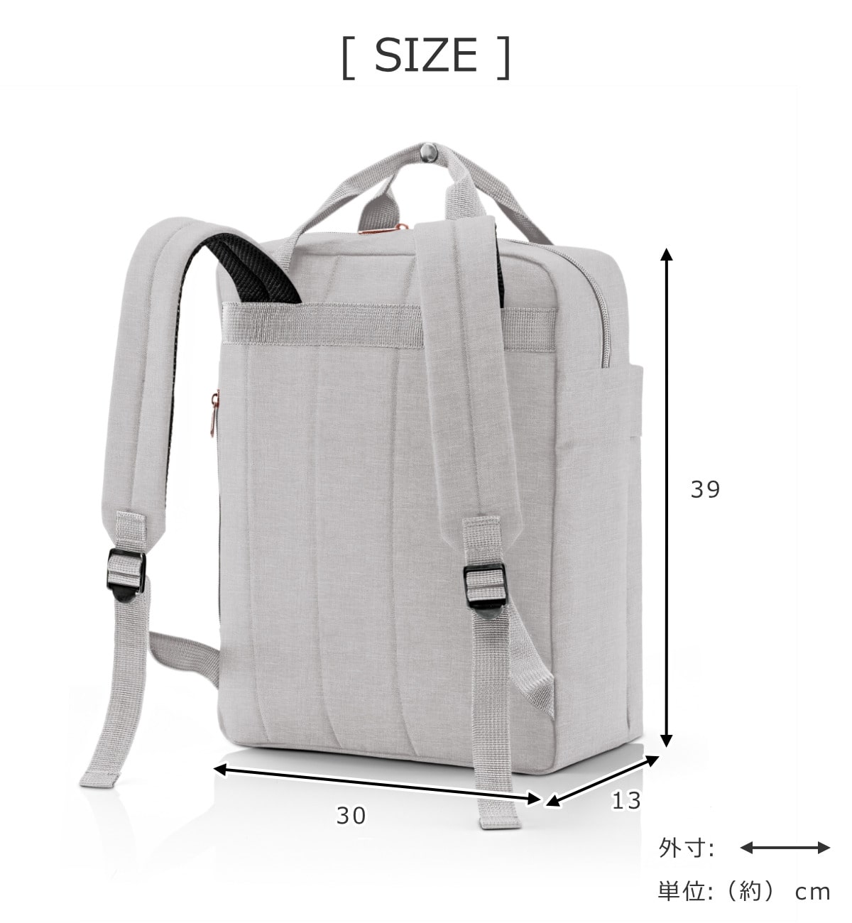 スタイリッシュなのにたくさん収納できる実用的なサイズ感の多目的バッグパックです。
