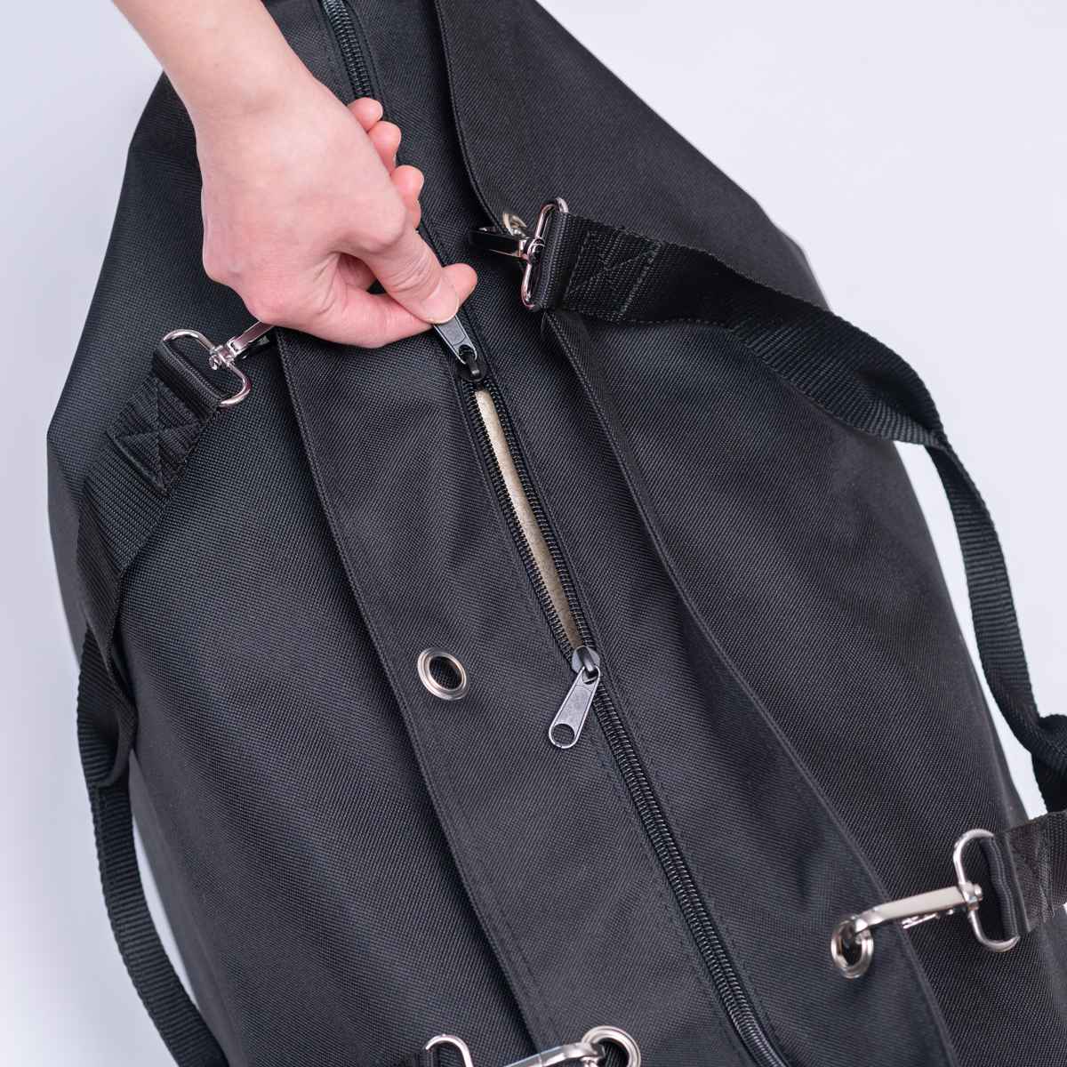 開口部はダブルファスナー仕様で使いやすく、すき間なくしっかり閉まります。