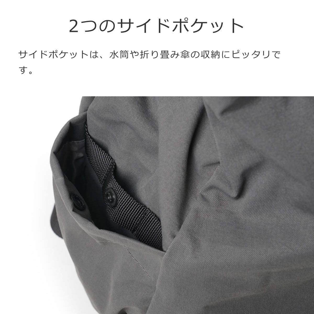 水筒や折り畳み傘の収納にピッタリな2つのサイドポケット付きです。