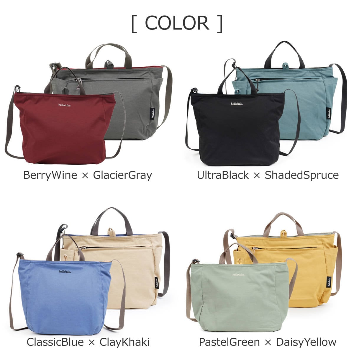 | 種類 | BerryWinexGlacierGray、UltraBlackxShadedSpruce、ClassicBluexClayKhaki、PastelGreenxDaisyYellow、CloudPinkxLinen、CloudyGray/ClassicBlue、BrightOlive/Linen、MistyLilacxCloudyGray、PaleTealxClayKhaki |