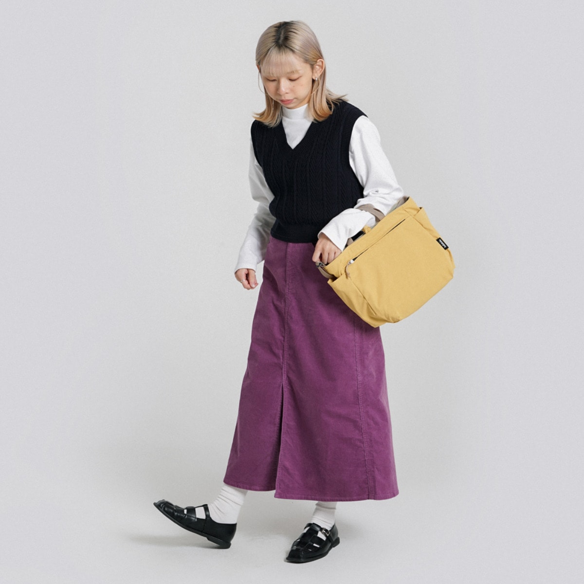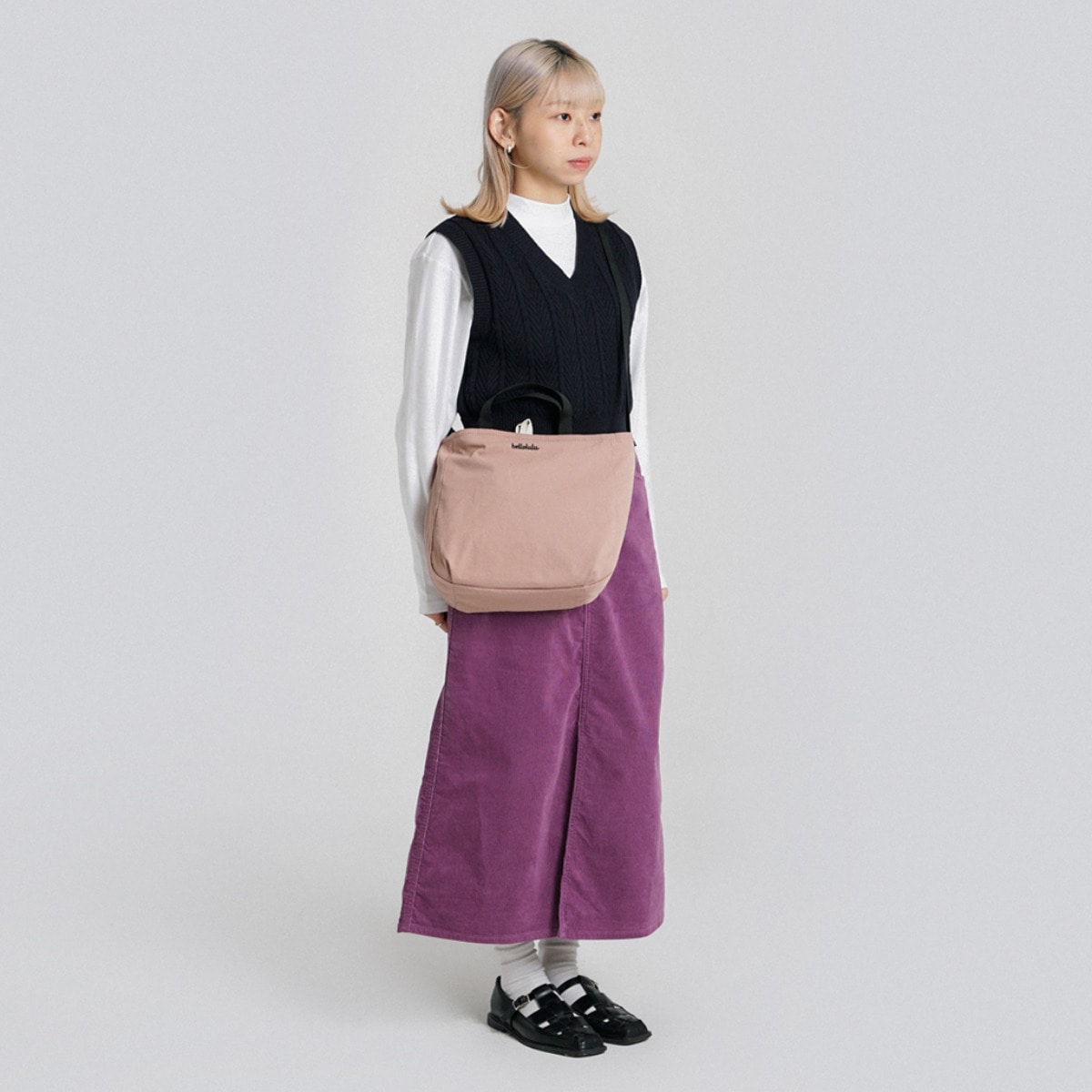 手持ちでも肩掛けでも使える2way仕様。約幅24×奥行10×高さ27.5cmと、普段使いに最適なサイズ感です。