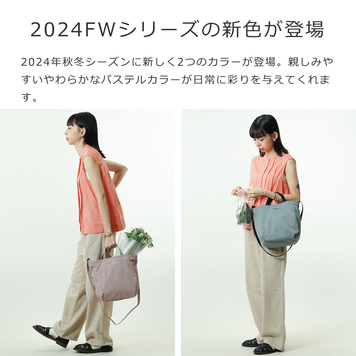 2024年秋冬シーズンに新しく2つのカラーが登場。親しみやすいやわらかなパステルカラーが日常に彩りを与えてくれます。