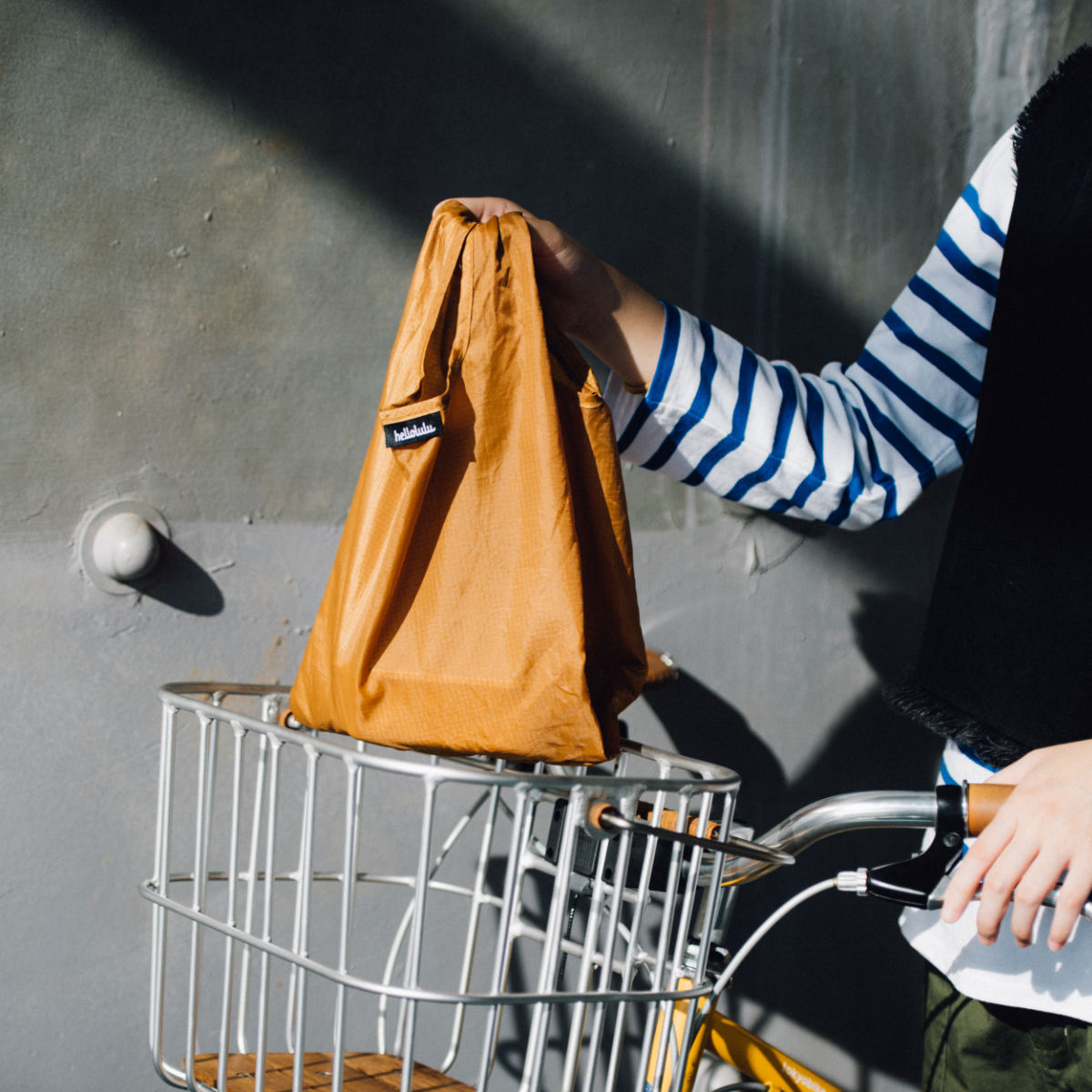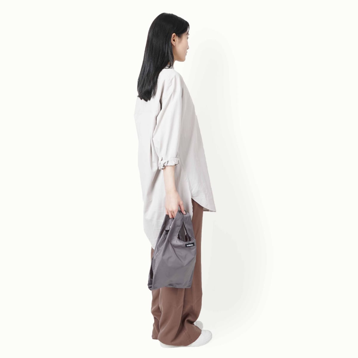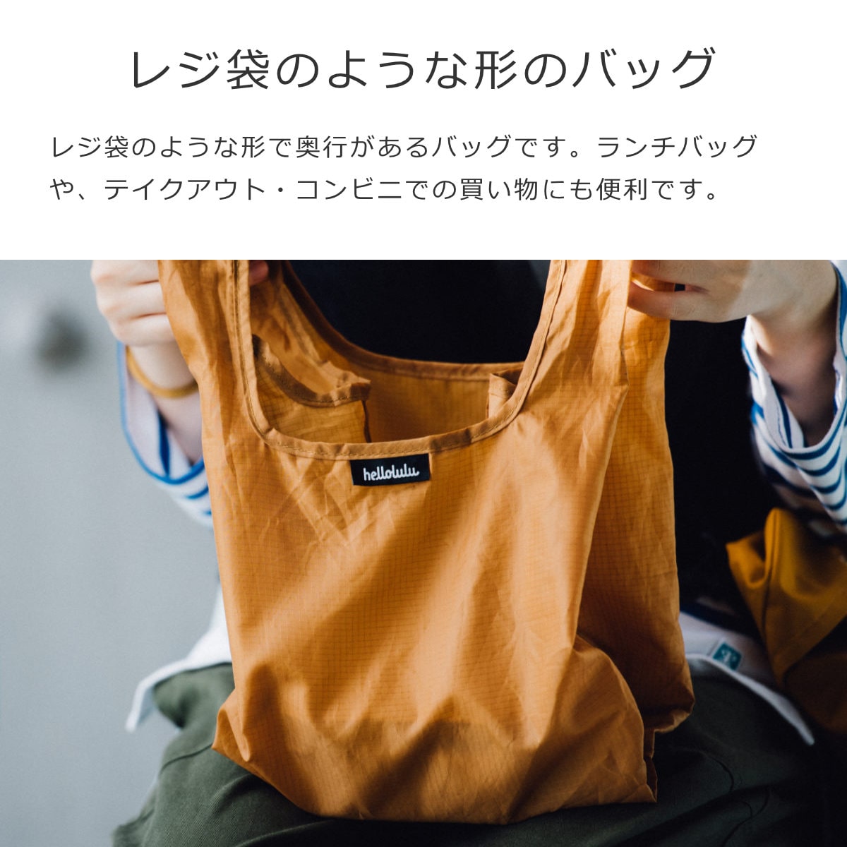 ランチボックス用に設計されたコンパクトなエコバッグです。レジ袋のような形で奥行があり、ランチバッグとしてはもちろん、テイクアウトやコンビニでの買い物にも便利です。
