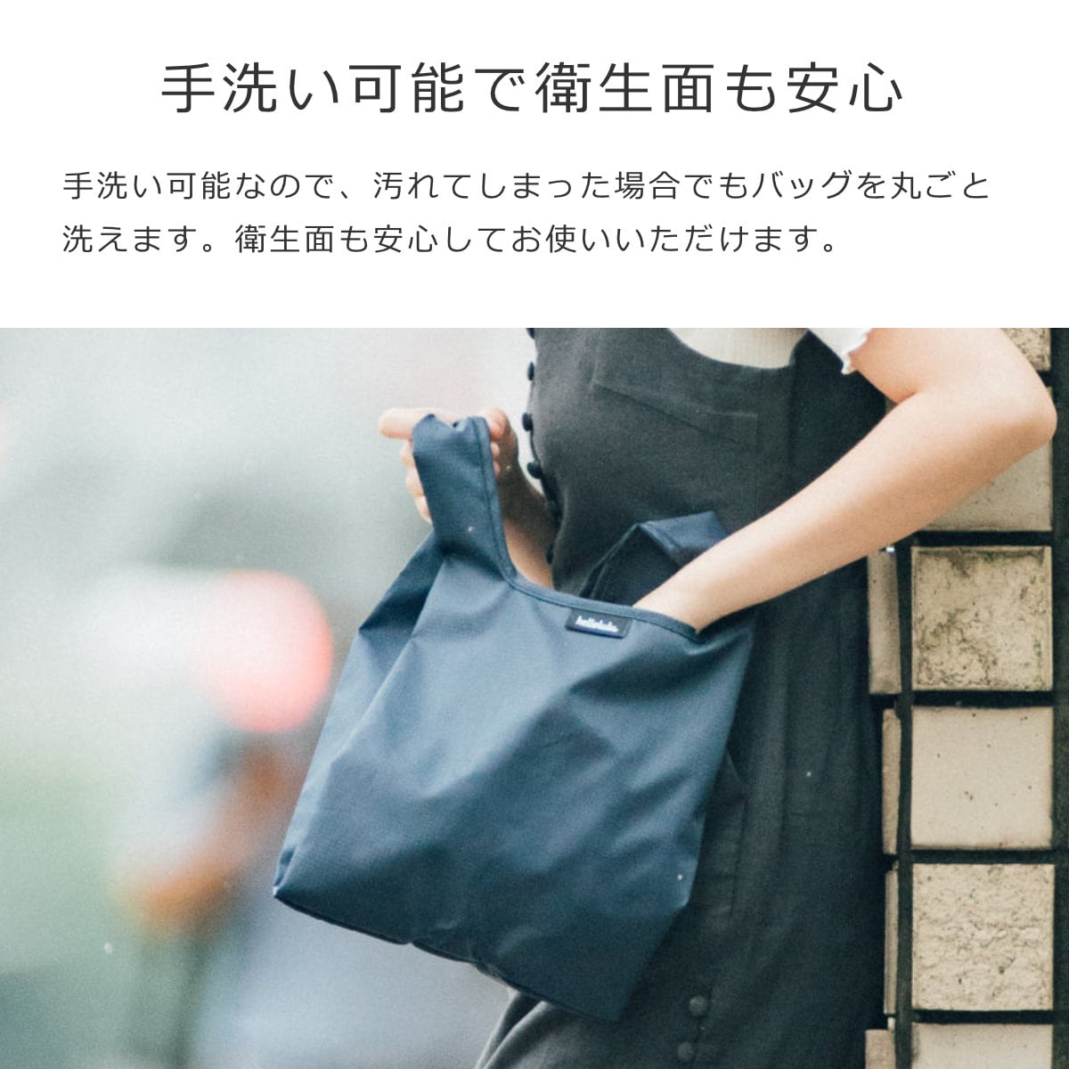 手洗い可能なので、汚れてしまった場合でもバッグを丸ごと洗えます。衛生面も安心してお使いいただけます。