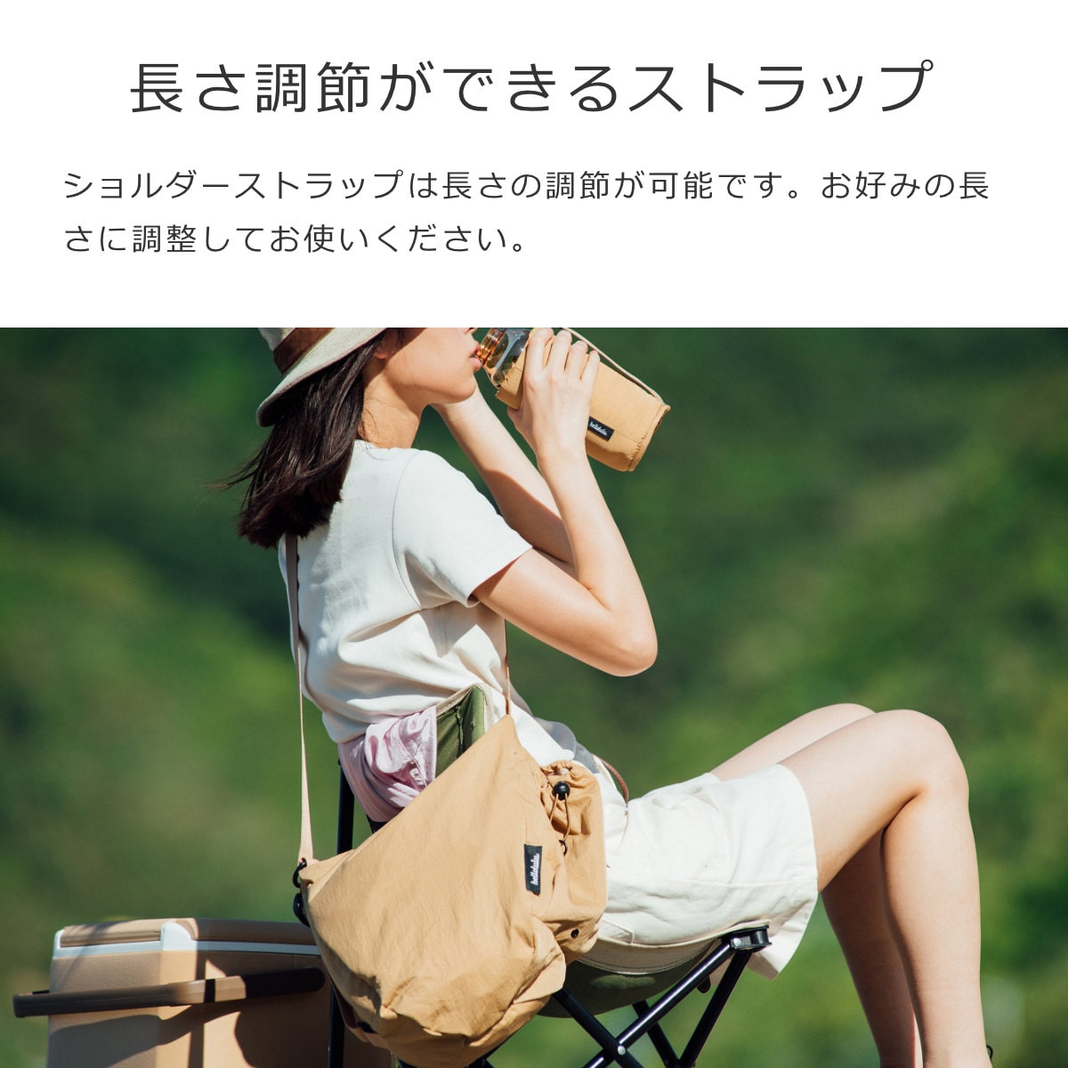 ショルダー ストラップは長さの調節が可能です。お好みの長さに調整してお使いください。
