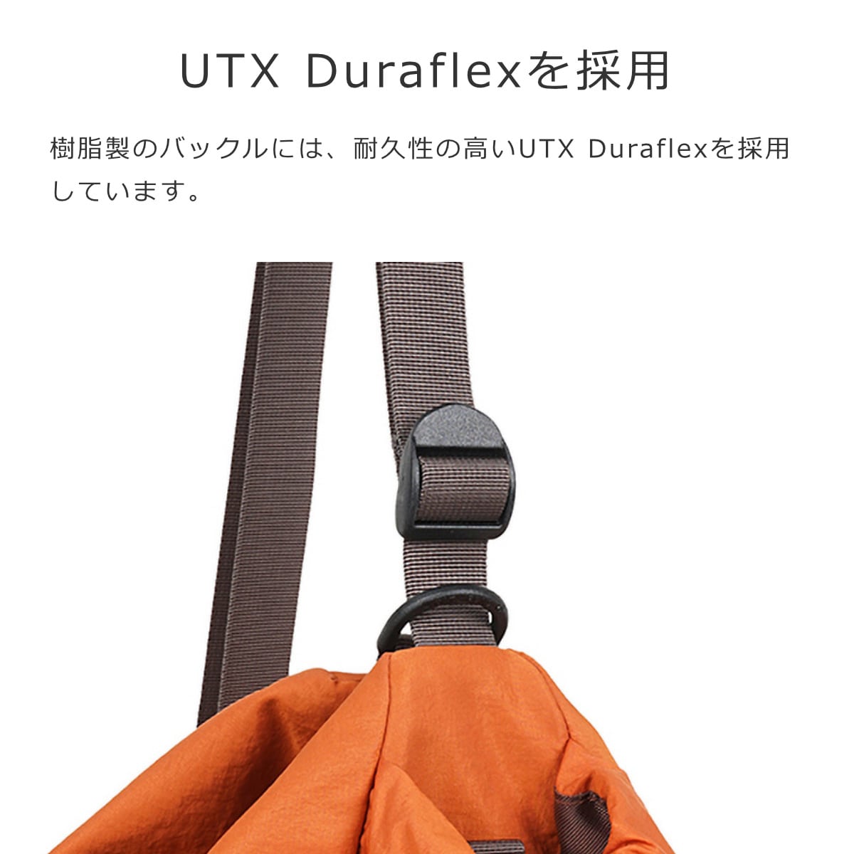 バックルには、機能的で耐久性の高いUTX Duraflexを採用しています。