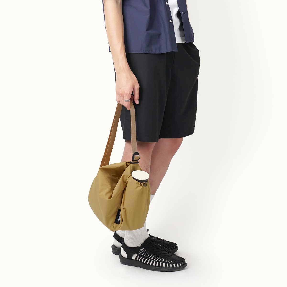 リサイクルしたナイロン素材を使用しており、軽量で使いやすいだけでなく環境にも優しいアイテムです。撥水加工が施されているので、アウトドアや野外フェスにもおすすめです。
