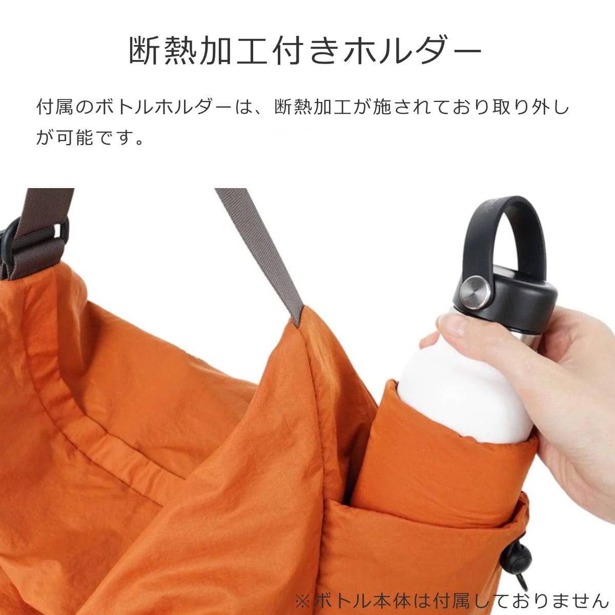 付属のボトルホルダーは、断熱加工が施されており取り外しが可能です。