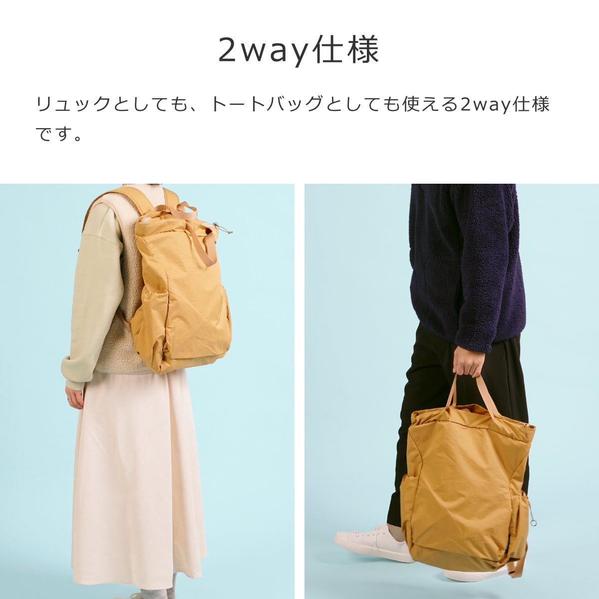 リュックだけでなく、トートバッグとしても使える2way仕様です。