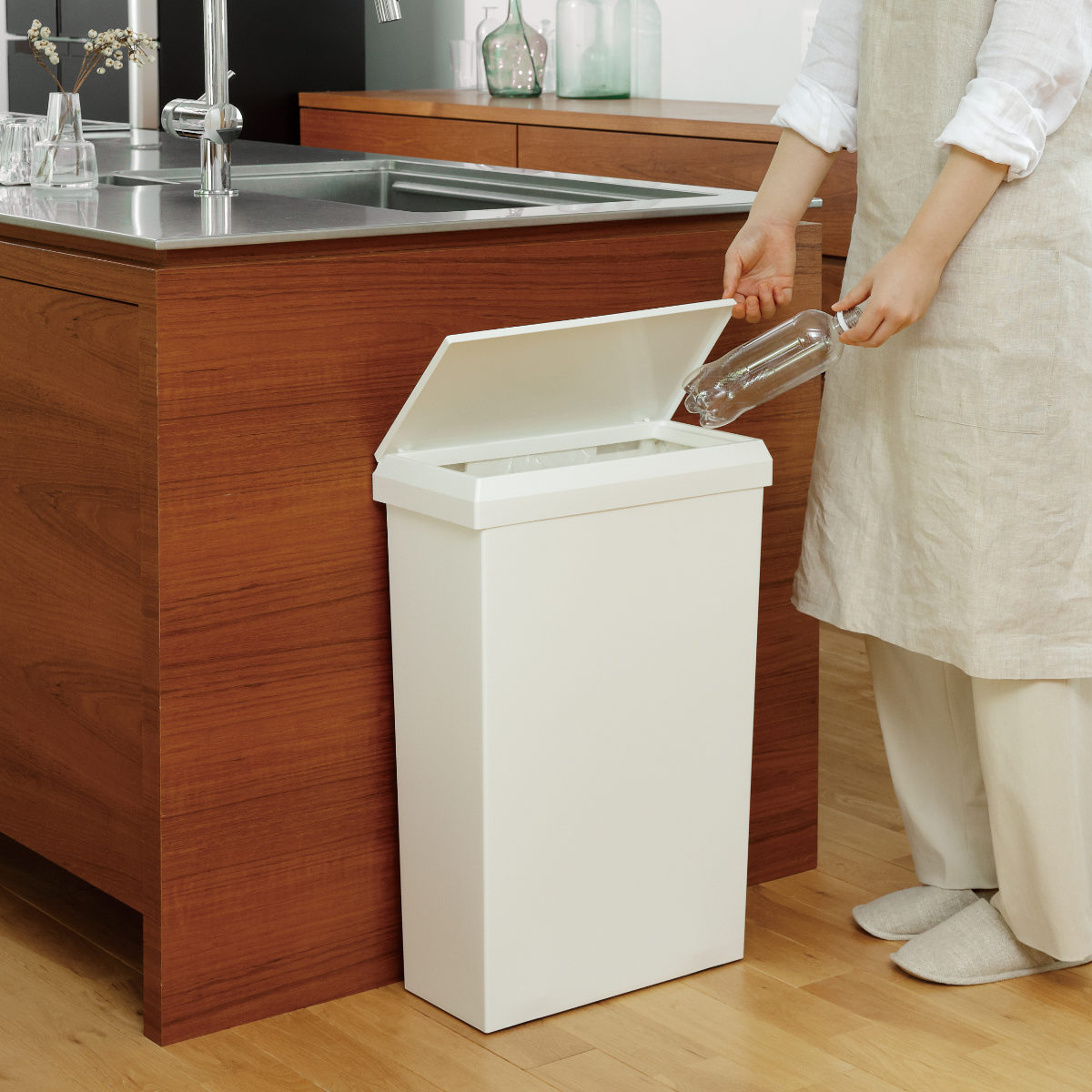 清潔感のあるシンプルなデザインがゴミ箱と主張し過ぎず、お部屋のインテリアに溶け込みます。可燃ゴミと不燃ゴミで分別するのに並べて置いてもスッキリとした印象です。