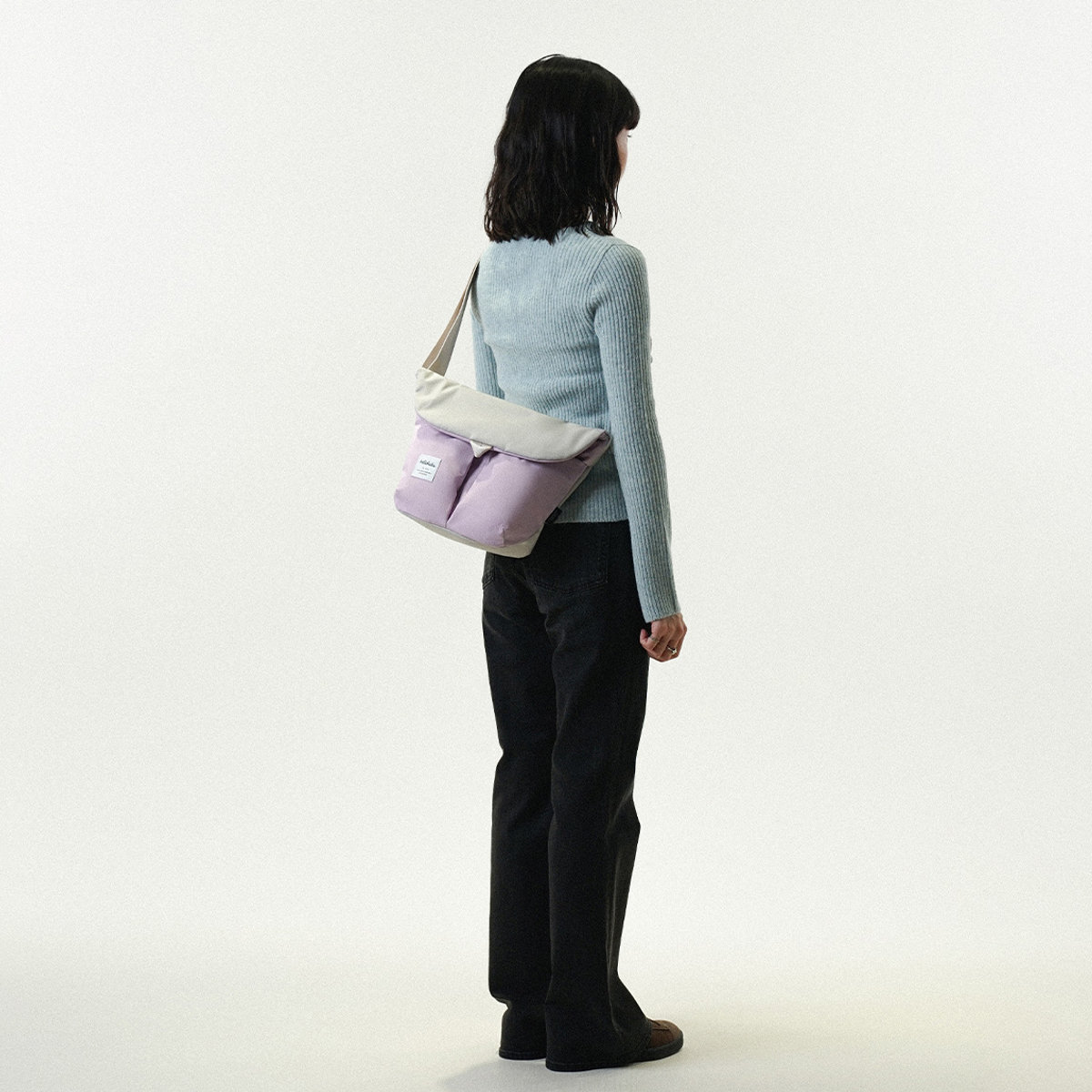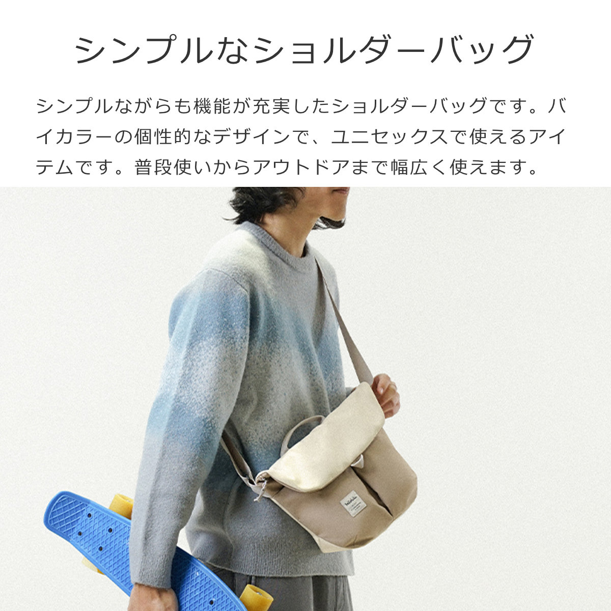 シンプルながらも機能が充実したショルダーバッグです。バイカラーの個性的なデザインで、ユニセックスで使えるアイテムです。デイリー使いからアウトドアや小旅行まで幅広く使えます。