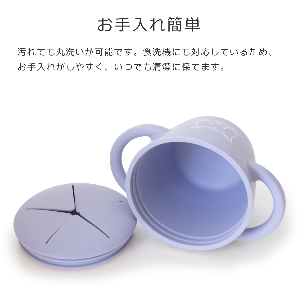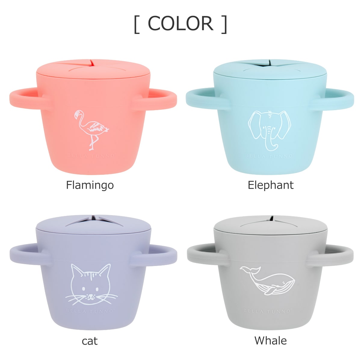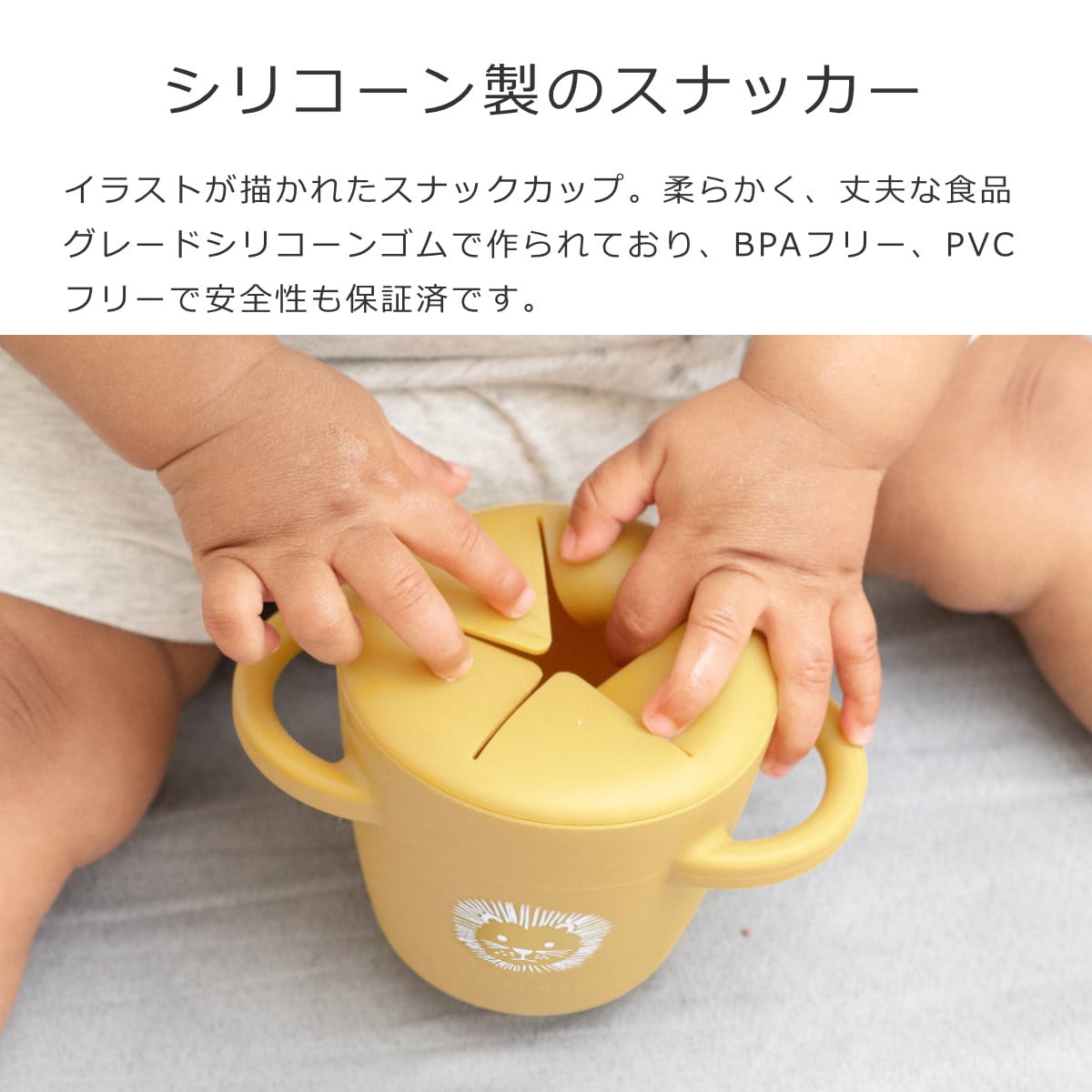 可愛いイラストが描かれたスナックカップ。柔らかく、丈夫な食品グレードシリコーンゴムで作られており、BPAフリー、PVCフリーで安全性も保証済です。