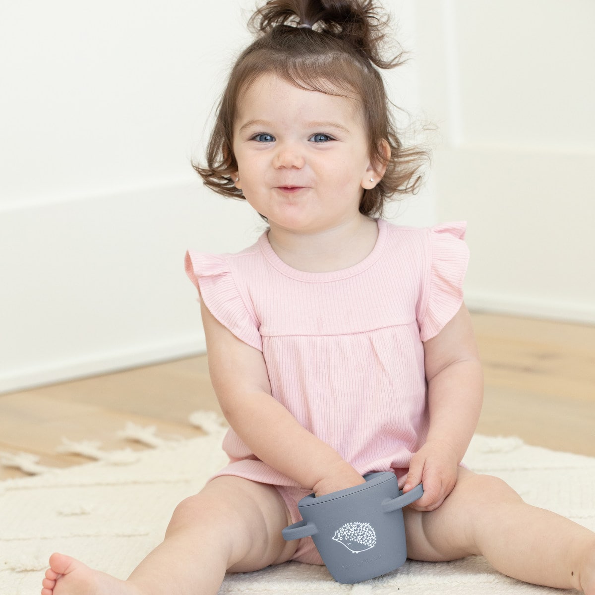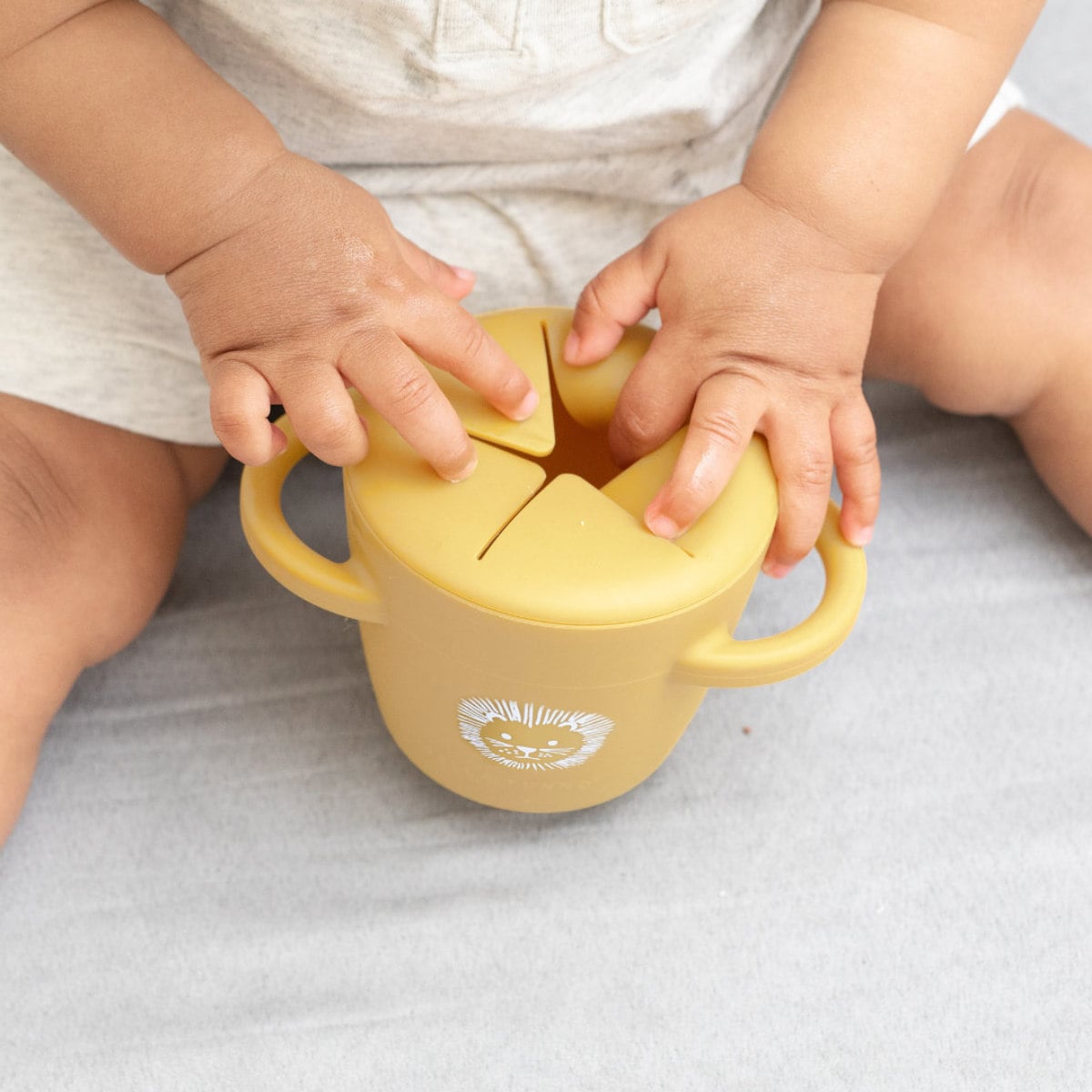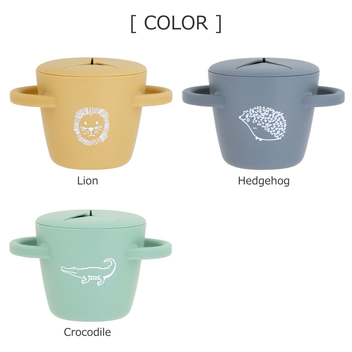 可愛いイラストが描かれたスナックカップ。柔らかく、丈夫な食品グレードシリコーンゴムで作られており、BPAフリー、PVCフリーで安全性も保証済です。