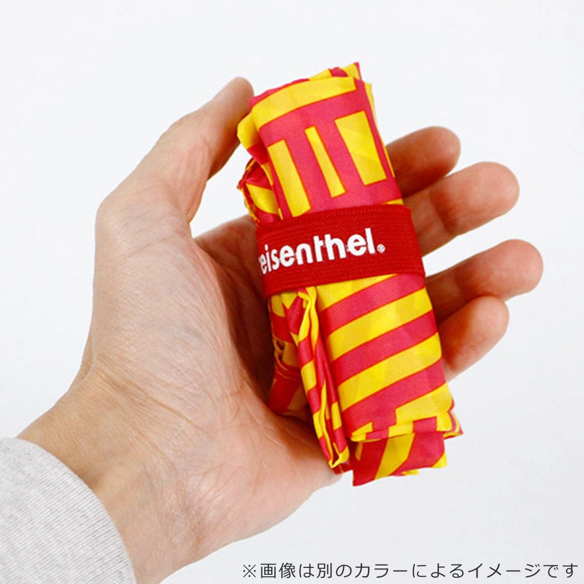 小さく折りたたんでゴムベルトで留めれば、持ち運びに便利なコンパクトサイズになります。ゴムベルトはバッグに縫い付けられているので、紛失する心配がありません。
