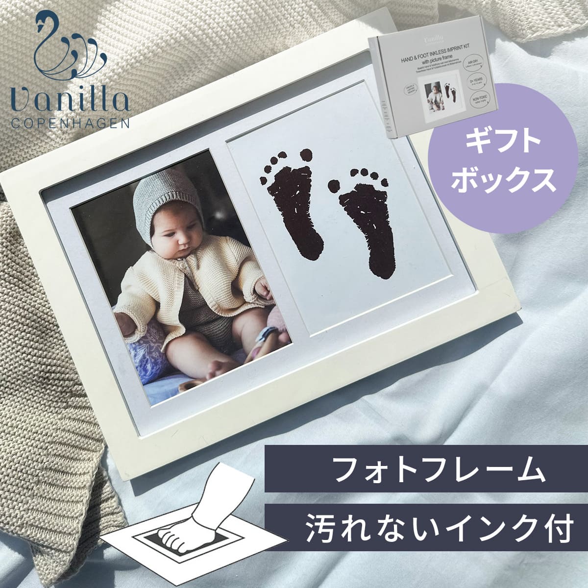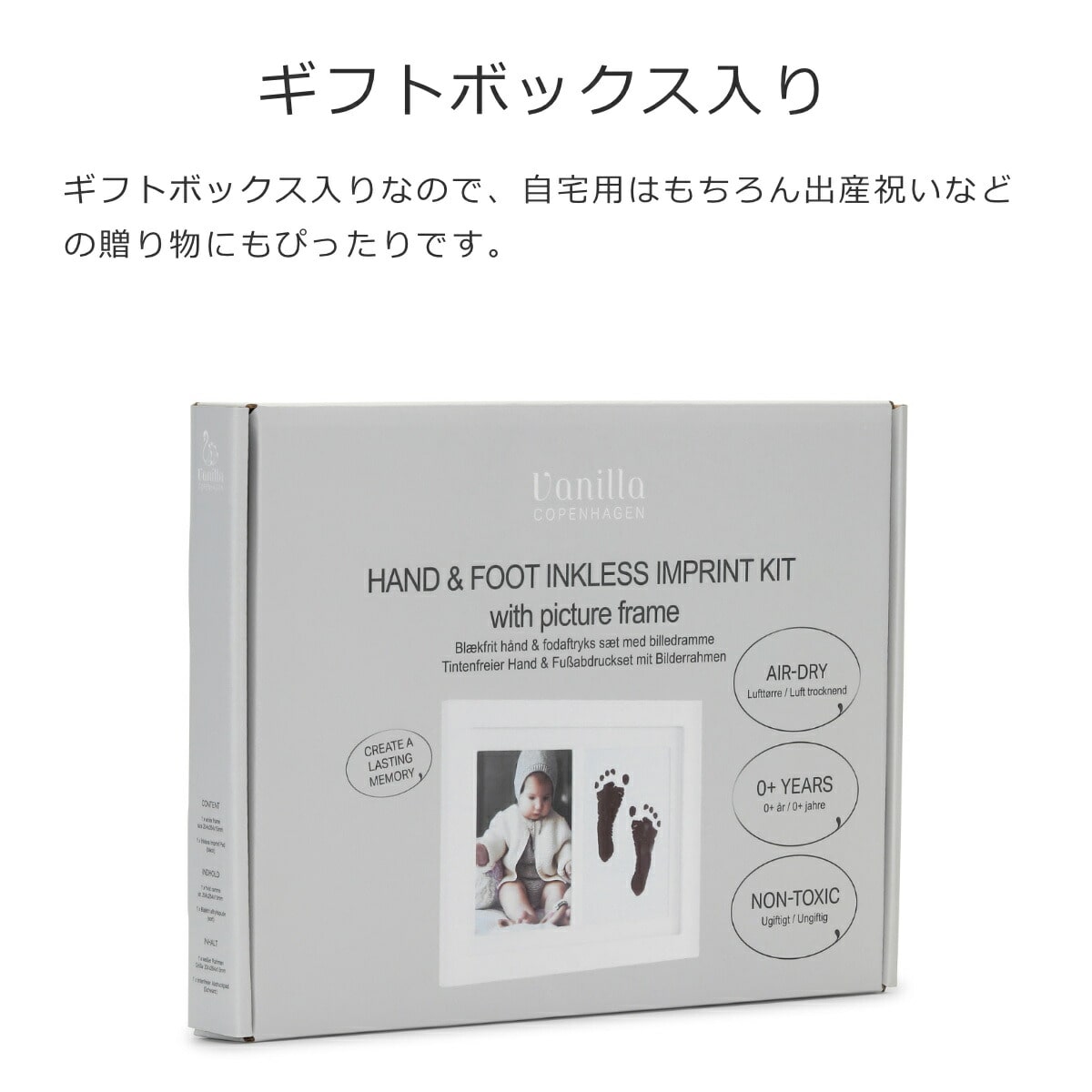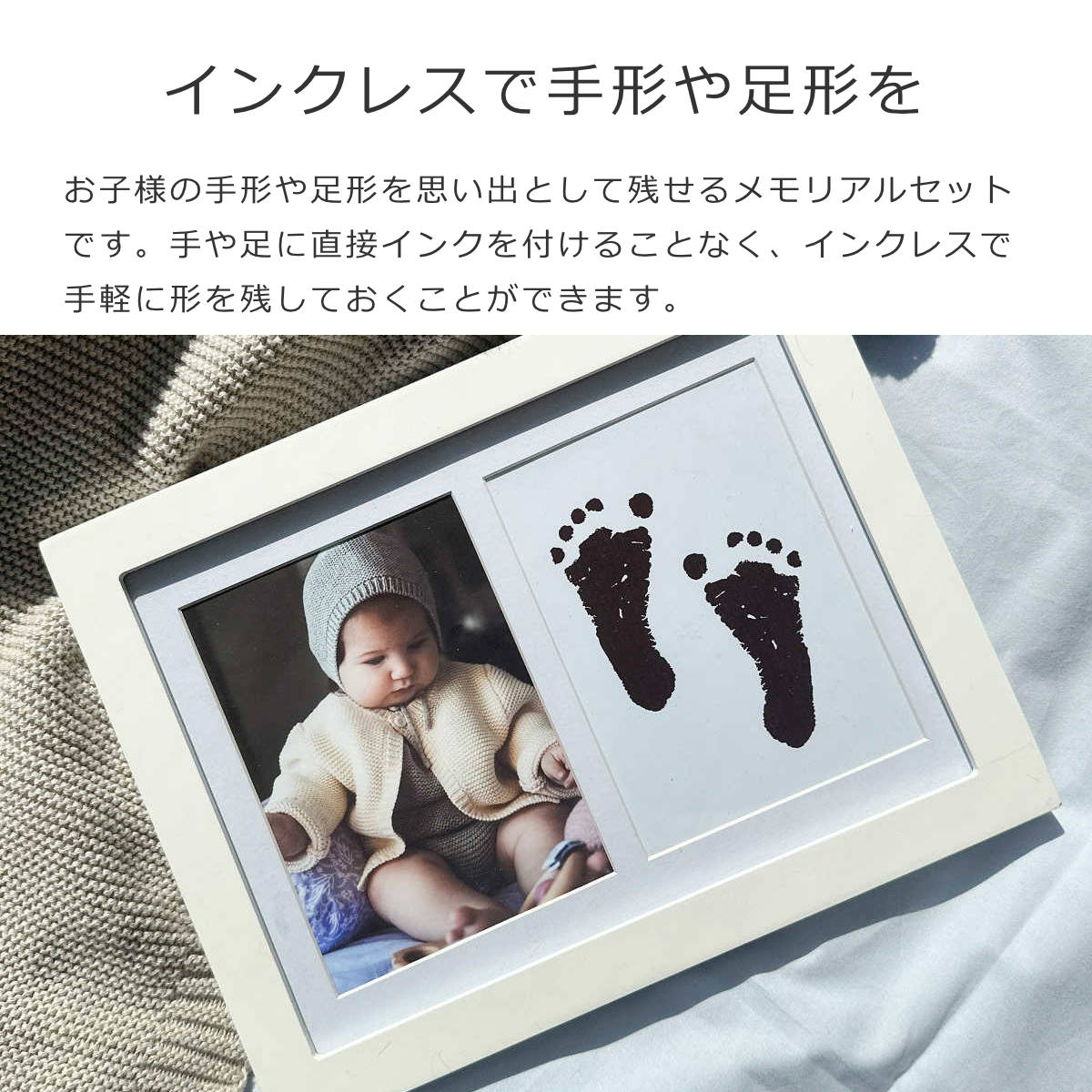 お子様の手形や足形を思い出として残せるメモリアルセットです。手や足に直接インクを付けることなく、インクレスで手軽に形を残しておくことができます。