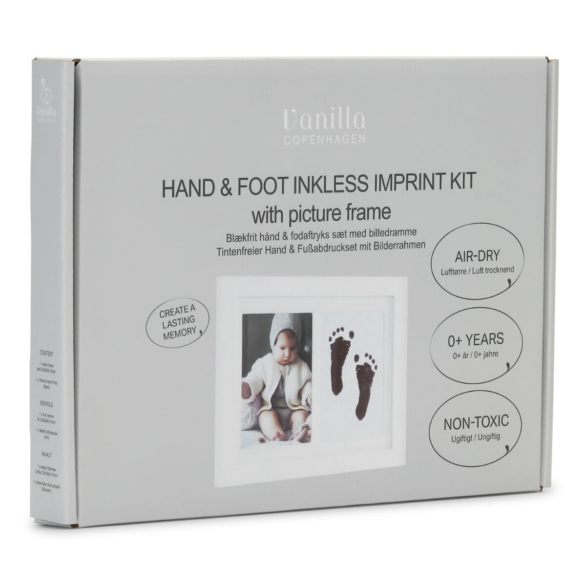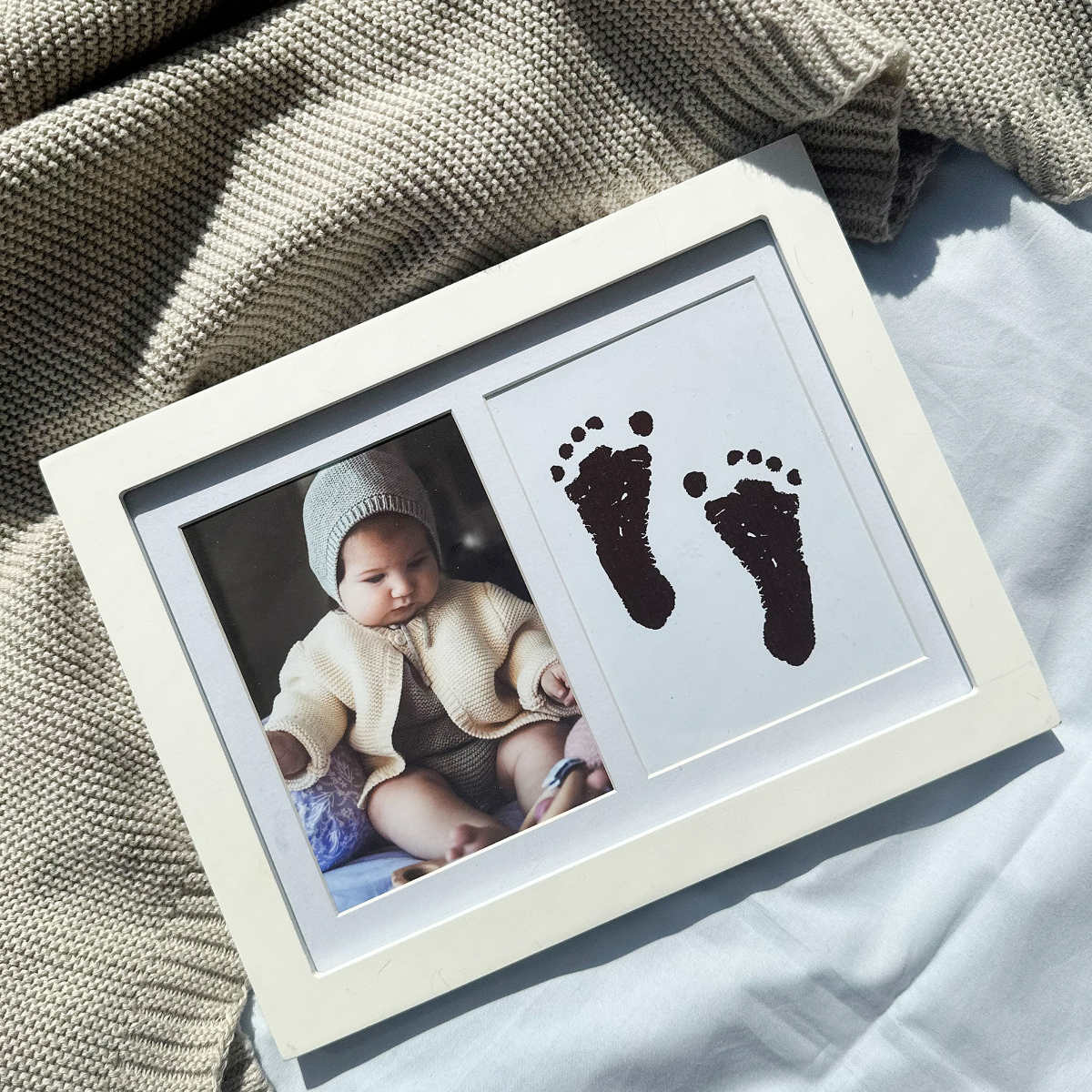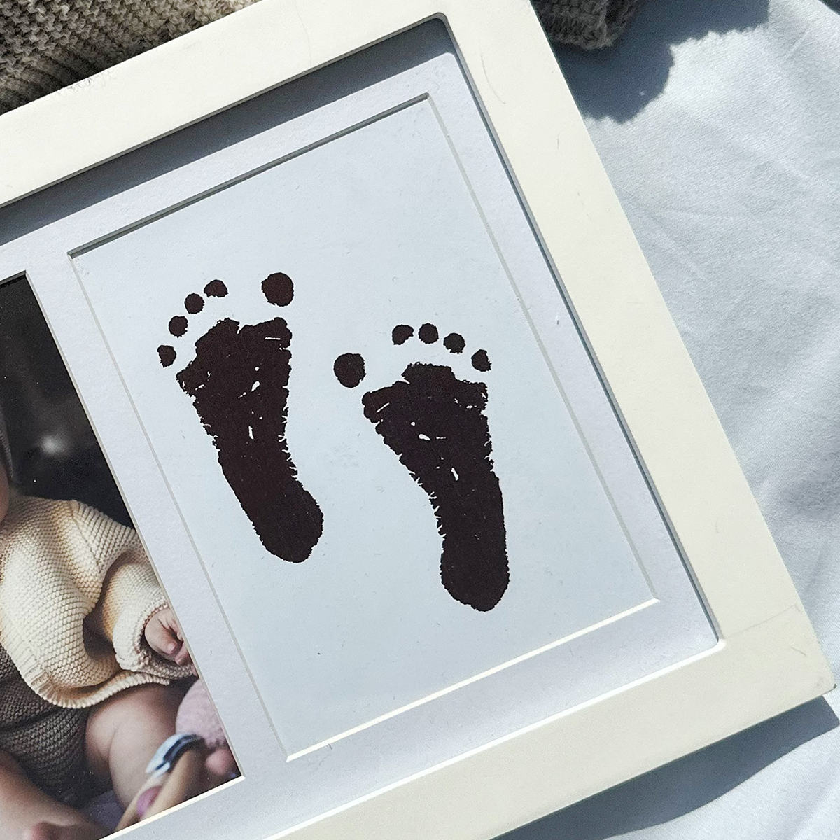 お子様の手形や足形を思い出として残せるメモリアルセットです。手や足に直接インクを付けることなく、インクレスで手軽に形を残しておくことができます。