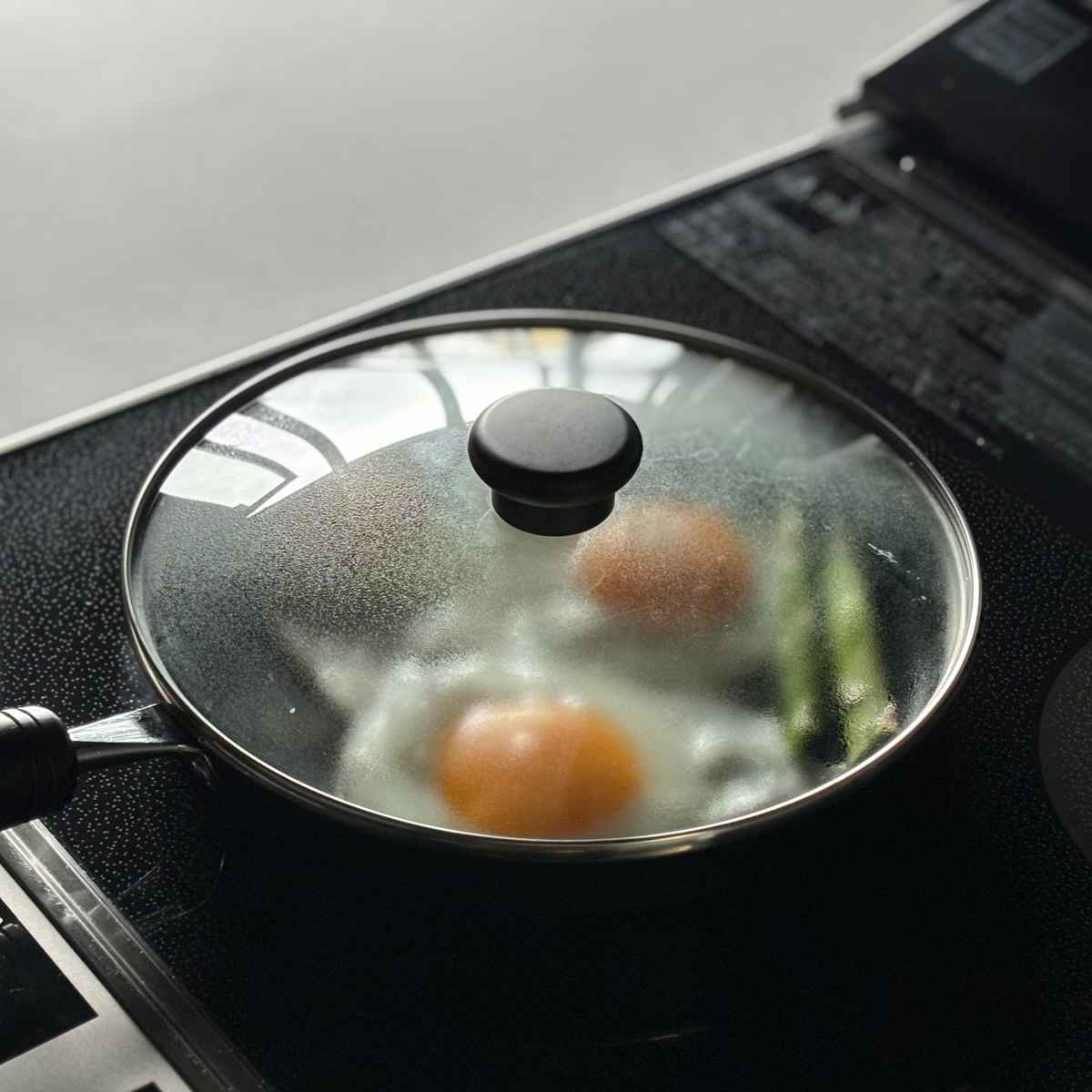 目玉焼き以外に餃子やホットケーキなど他の料理にも、もちろんご使用いただけます。蓋付きなので、蒸し焼きの際も便利です。