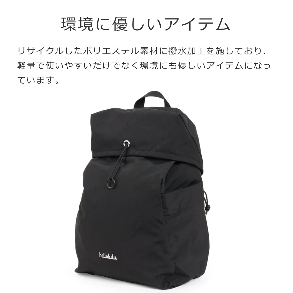リサイクルしたポリエステル素材を使用しており、軽量で使いやすいだけでなく環境にも優しいアイテムになっています。撥水加工が施されているので、デイリーユースからサブバッグとしてもオススメです。