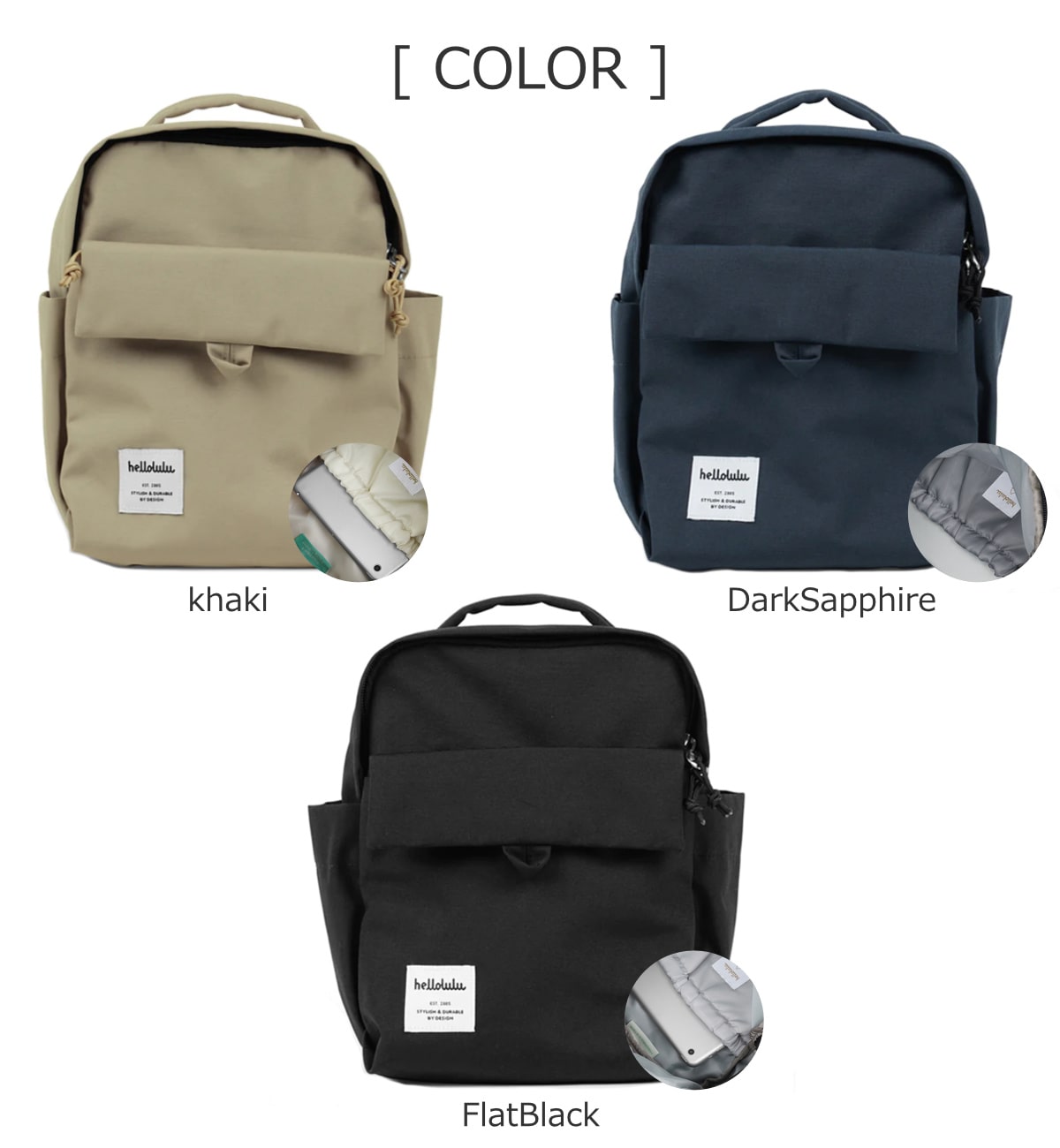 | 種類 | khaki、DarkSapphire、FlatBlack |