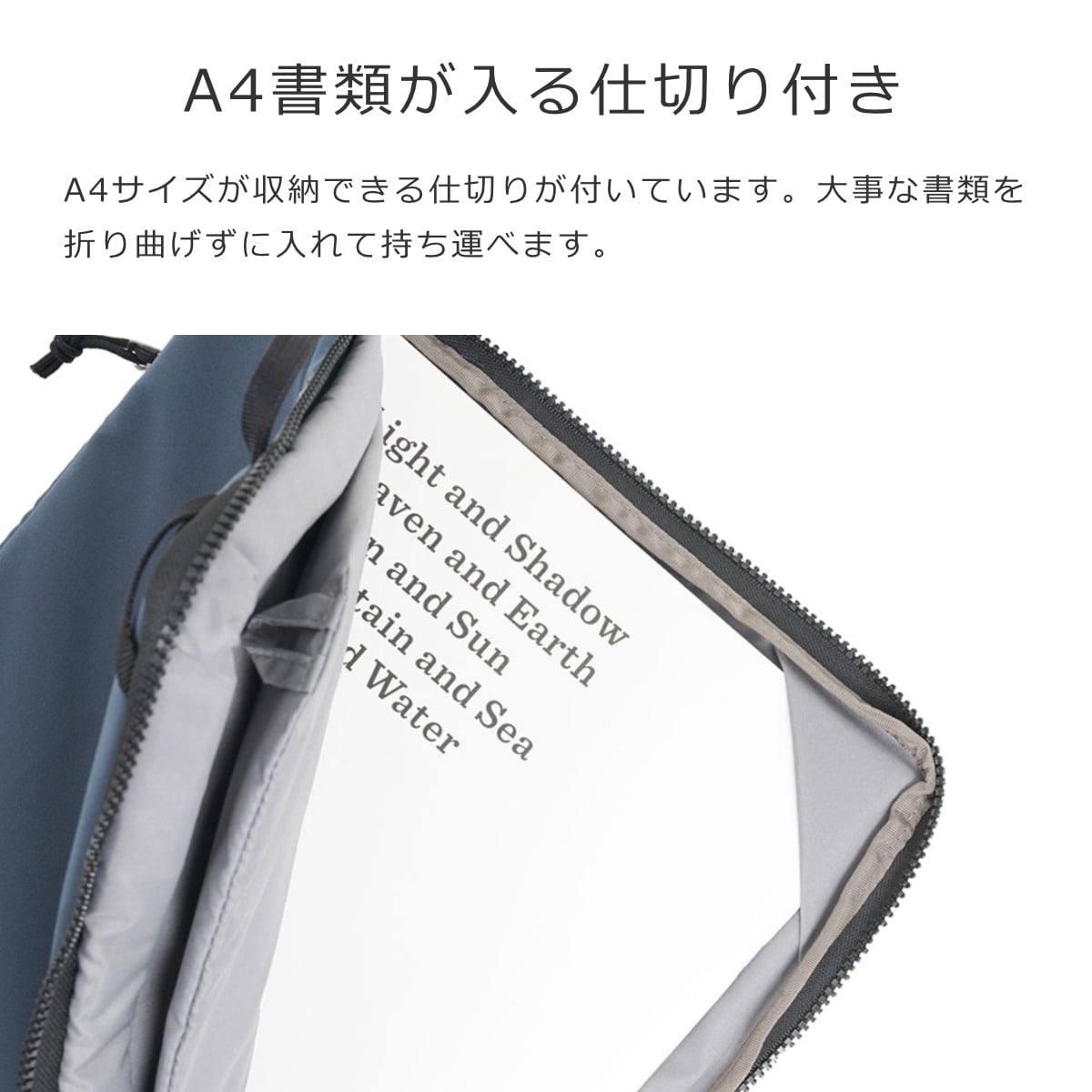 A4サイズが収納できる仕切りが付いています。大事な書類を折り曲げずに入れて持ち運べます。
