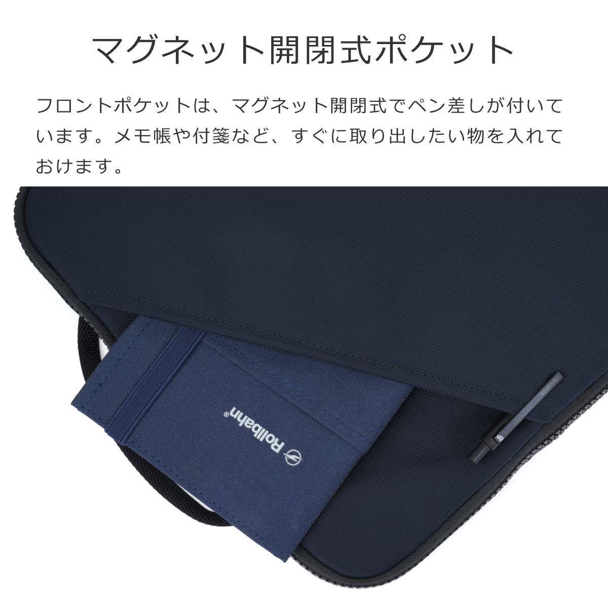 フロントポケットは、マグネット開閉式でペン差し付きです。メモ帳や付箋など、すぐに出し入れできます。