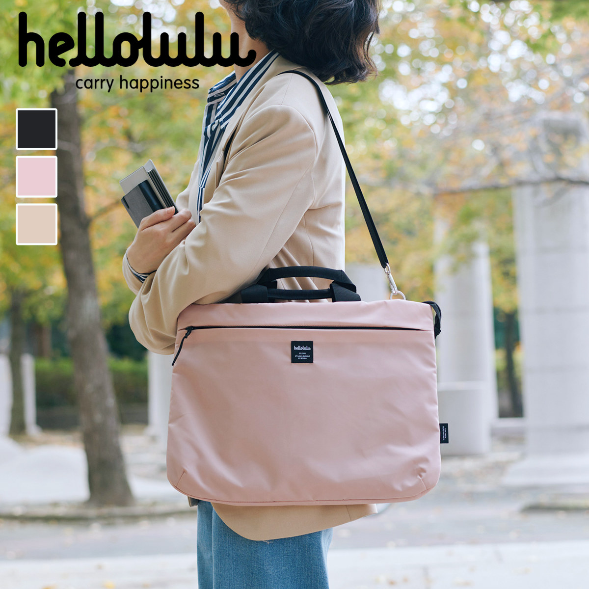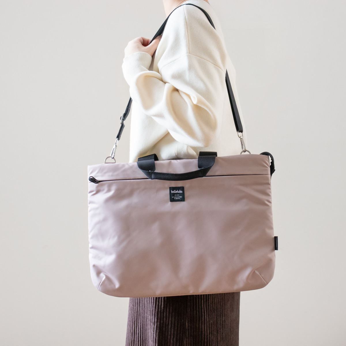ノートPCをスマートに持ち運べるPCバッグです。ショルダーストラップを付ければ肩掛け・斜め掛け、外せばハンドバッグとして使える3WAY仕様。シンプルなデザインで、ビジネスからカジュアルまで幅広いスタイルに馴染みます。