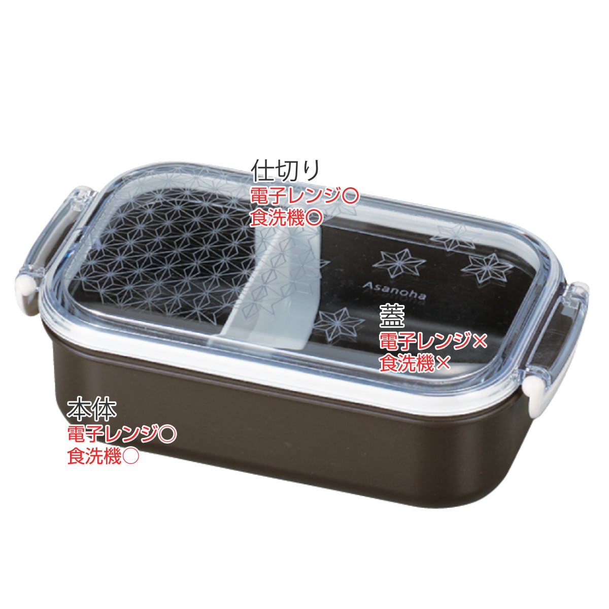 | 材質 | 本体:PET樹脂とABS樹脂の合成品 蓋:AS樹脂 仕切り:ポリプロピレン バックル:ABS樹脂 パッキン:シリコーンゴム |