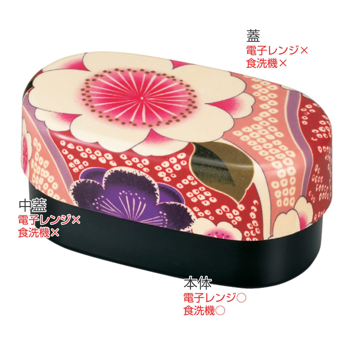まるで着物のような上品な和柄が美しい、小判型の二段お弁当箱です。日本の伝統文化を感じられるお弁当箱が、毎日のランチタイムを華やかに彩ります。