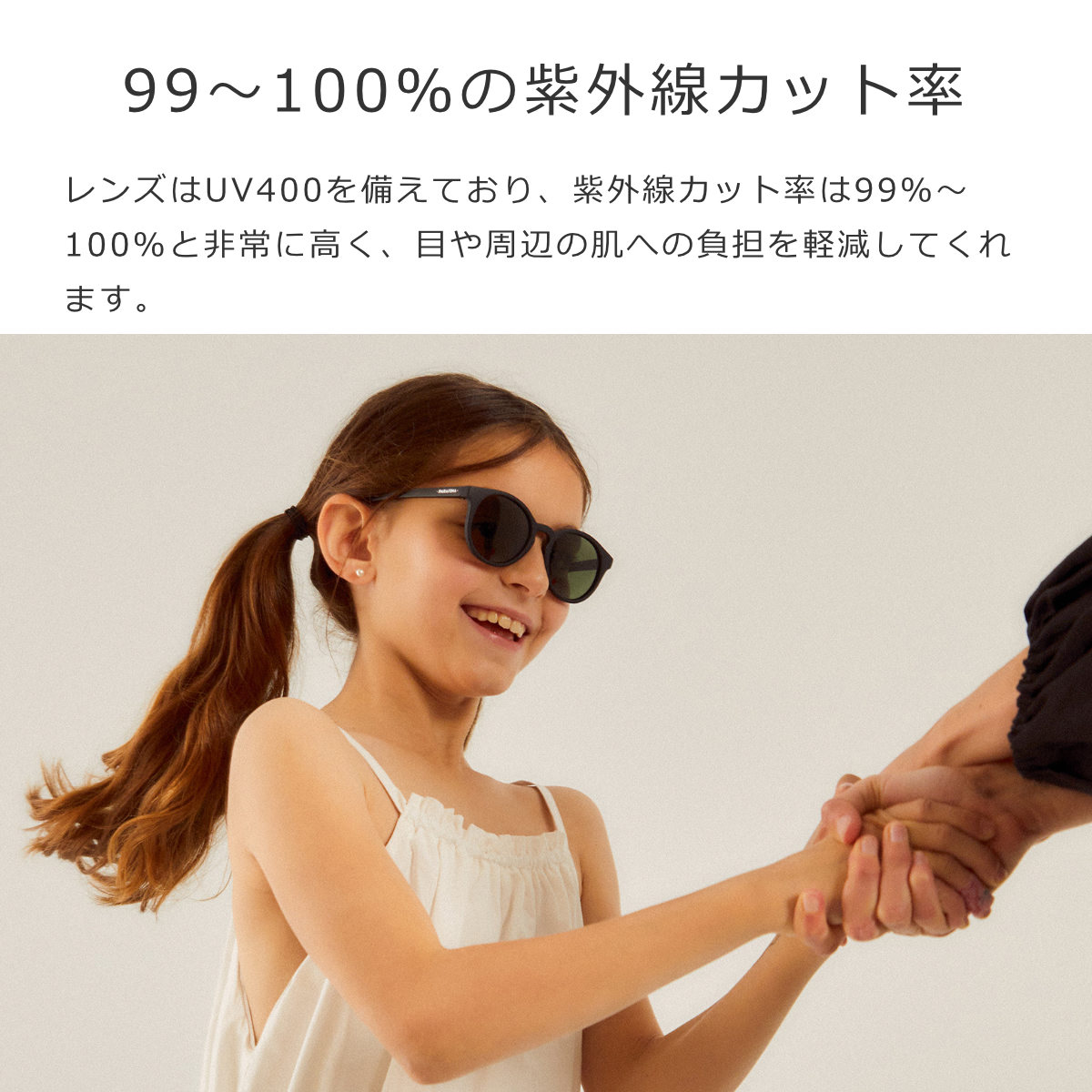 レンズはUV400を備えており、紫外線カット率は99%~100%と非常に高く、目や周辺の肌への負担を軽減してくれます。