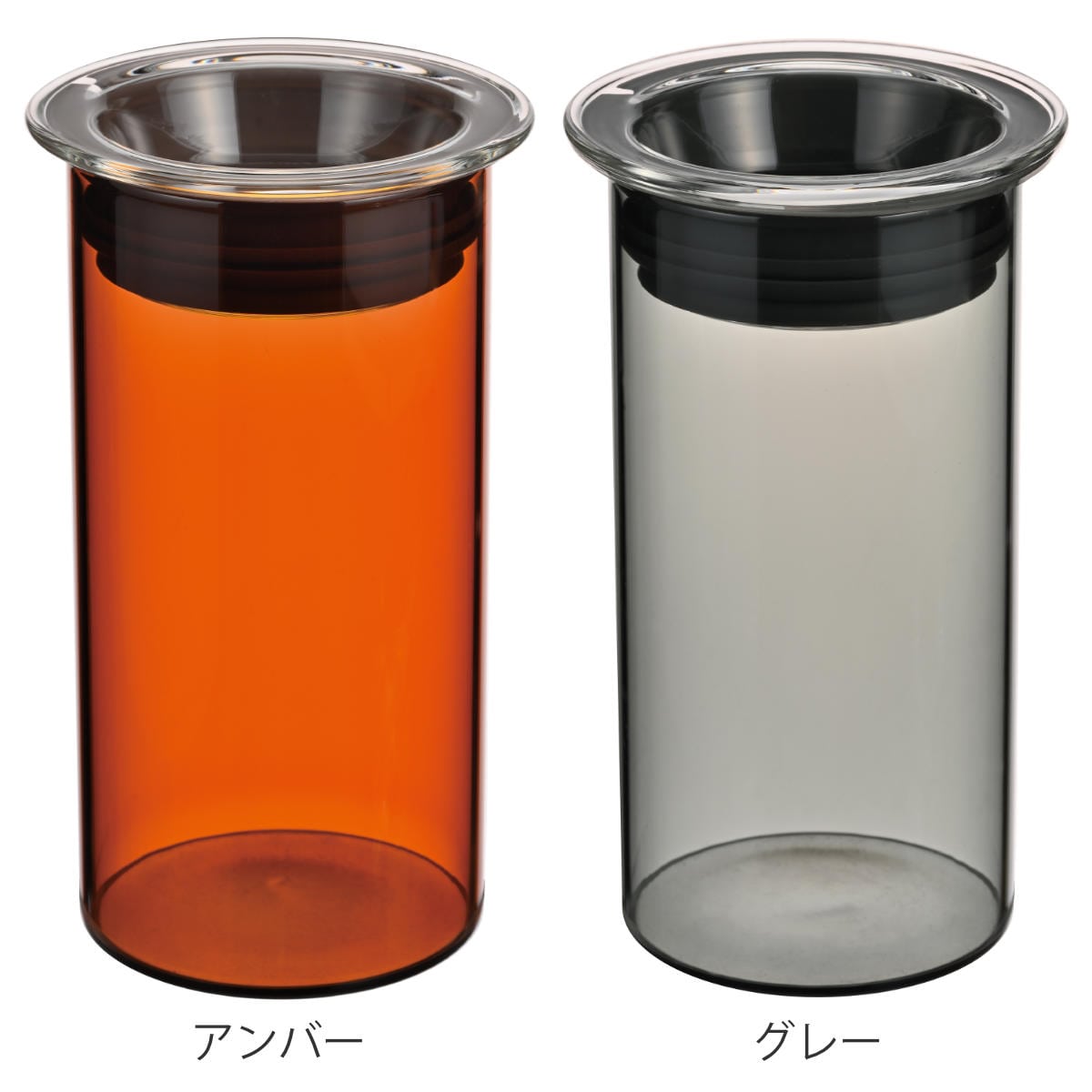 洗練されたカラーのガラスで、保存だけでなくインテリアにもなるキャニスターです。ガラス製なので臭いうつりしにくいのがポイントです。またカラーガラスなので遮光性があり、食品の劣化を防ぎます。キャニスターのフタは透明ガラスなので上から中の状態を見ることができ便利です。食卓に彩りを添えるアンバーカラーとグレーカラーから選べます。
