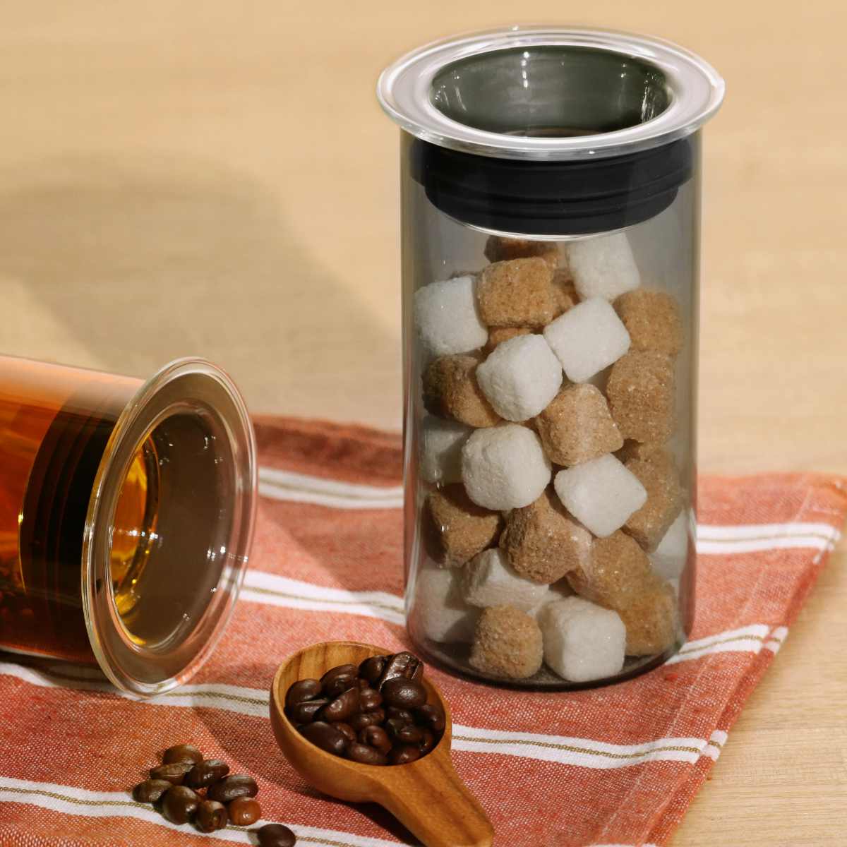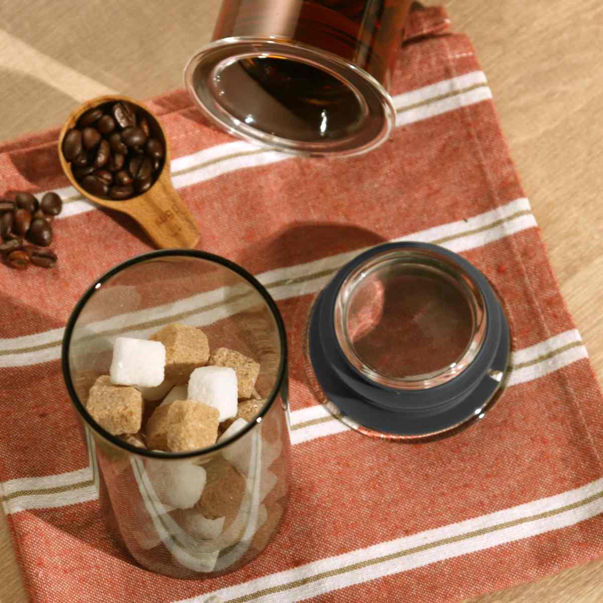 ●キャニスターのフタは透明ガラスなので上から中の状態を見ることができます。