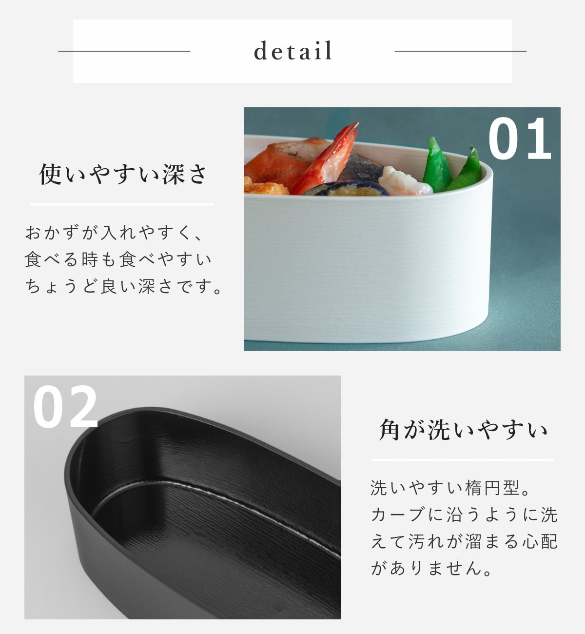 毎日使うお弁当箱はなによりも使いやすさが大切。曲げわっぱを樹脂製にすることで、日々の暮らしに寄り添う使いやすさを実現しました。