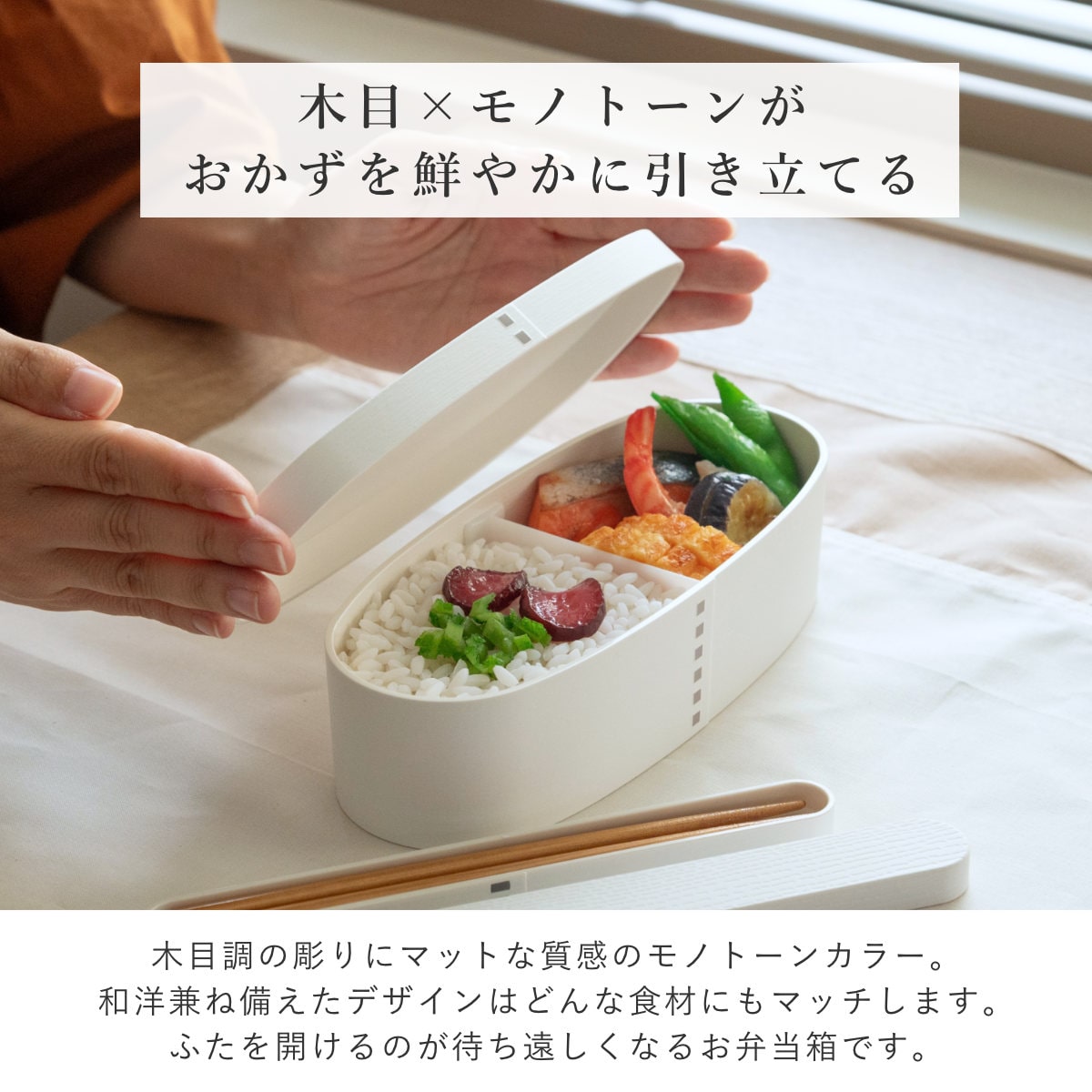 和洋兼ね備えたデザインはどんな食材にもマッチ。ふたを開けるのが待ち遠しくなるお弁当箱です。