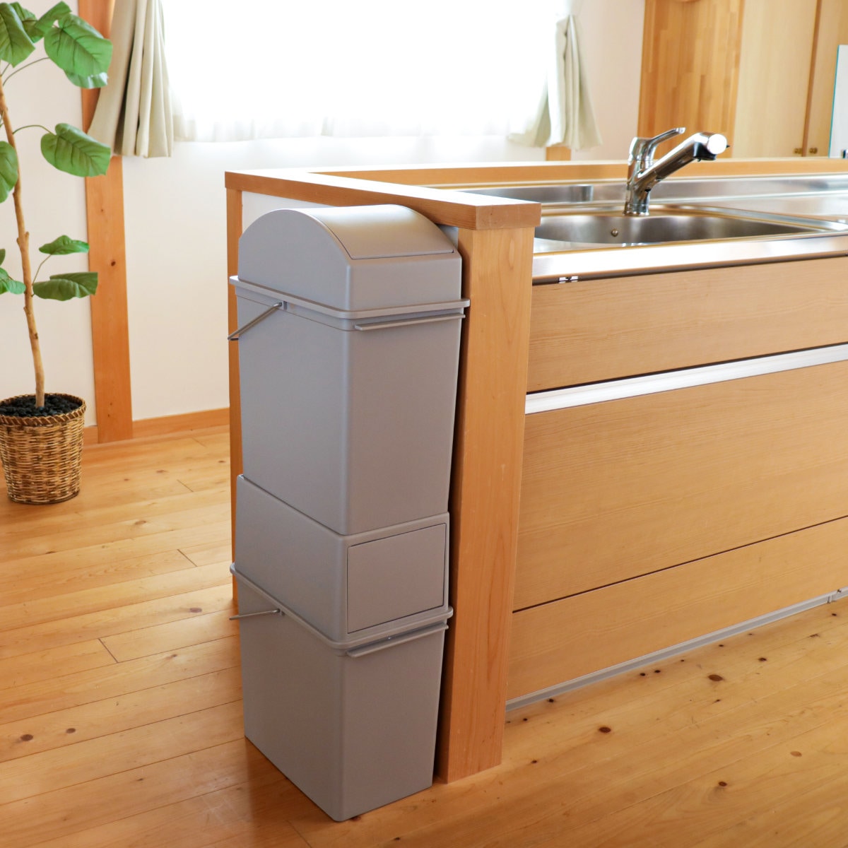 同シリーズのフロントオープンタイプを下段に置いて積み重ねることができるので、限られたスペースでもゴミを分別できます。小さめサイズの17Lは、ビンや缶のリサイクルゴミ用に使ったり、積み重ねて2段にするにはちょうどいいサイズ感です。