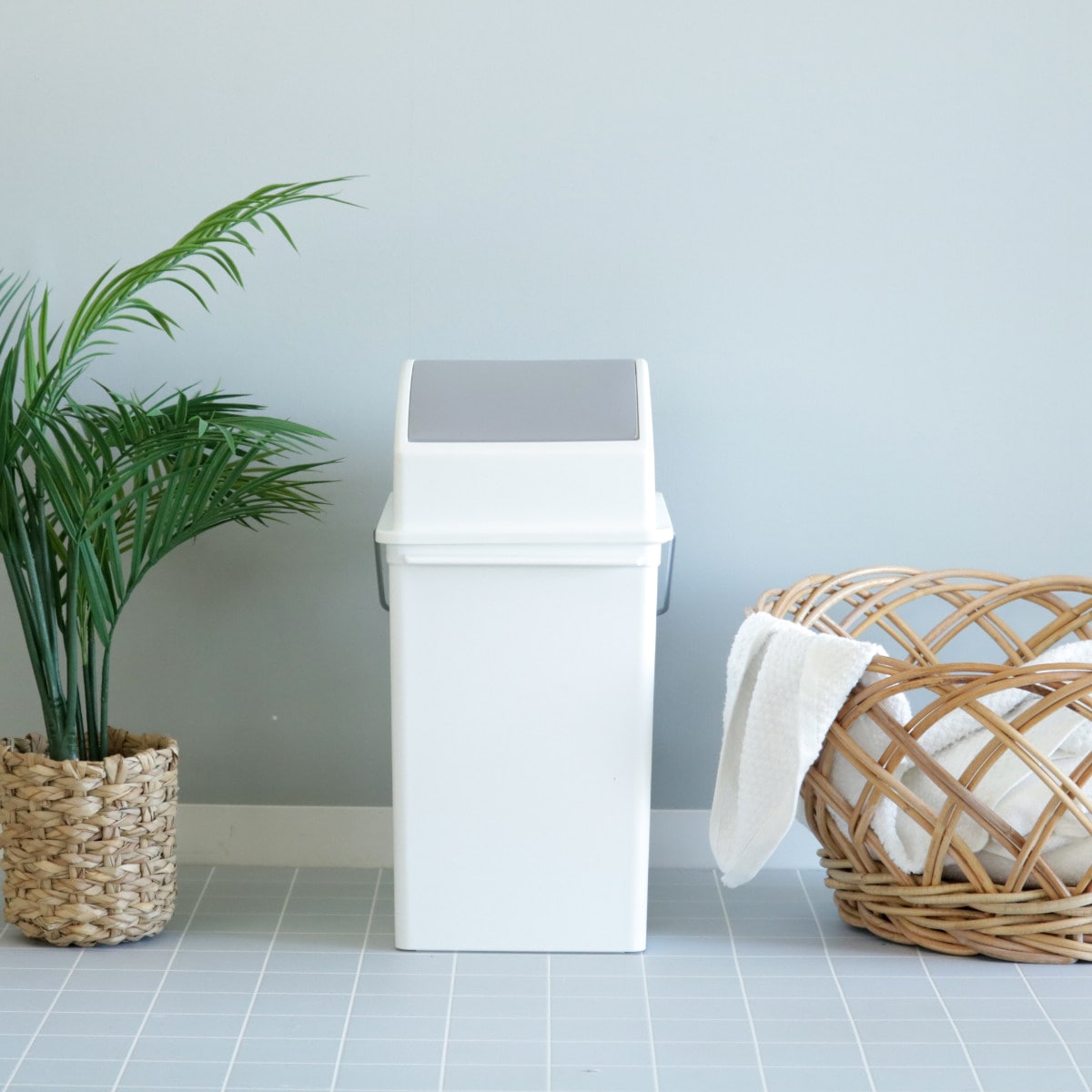 ゴミが捨てやすい開口部の広いスイングタイプです。上面がスイングするので子供でもゴミ捨てが簡単に行えます。ゴミを押し込めば開き、勝手に戻ってくるので、中身が見えないのもスイングタイプの良いところです。