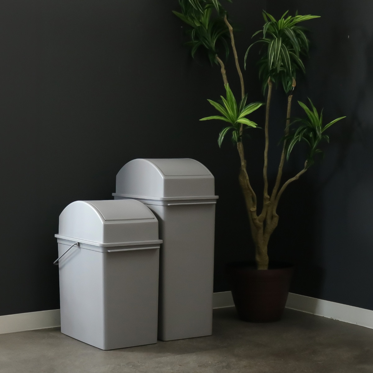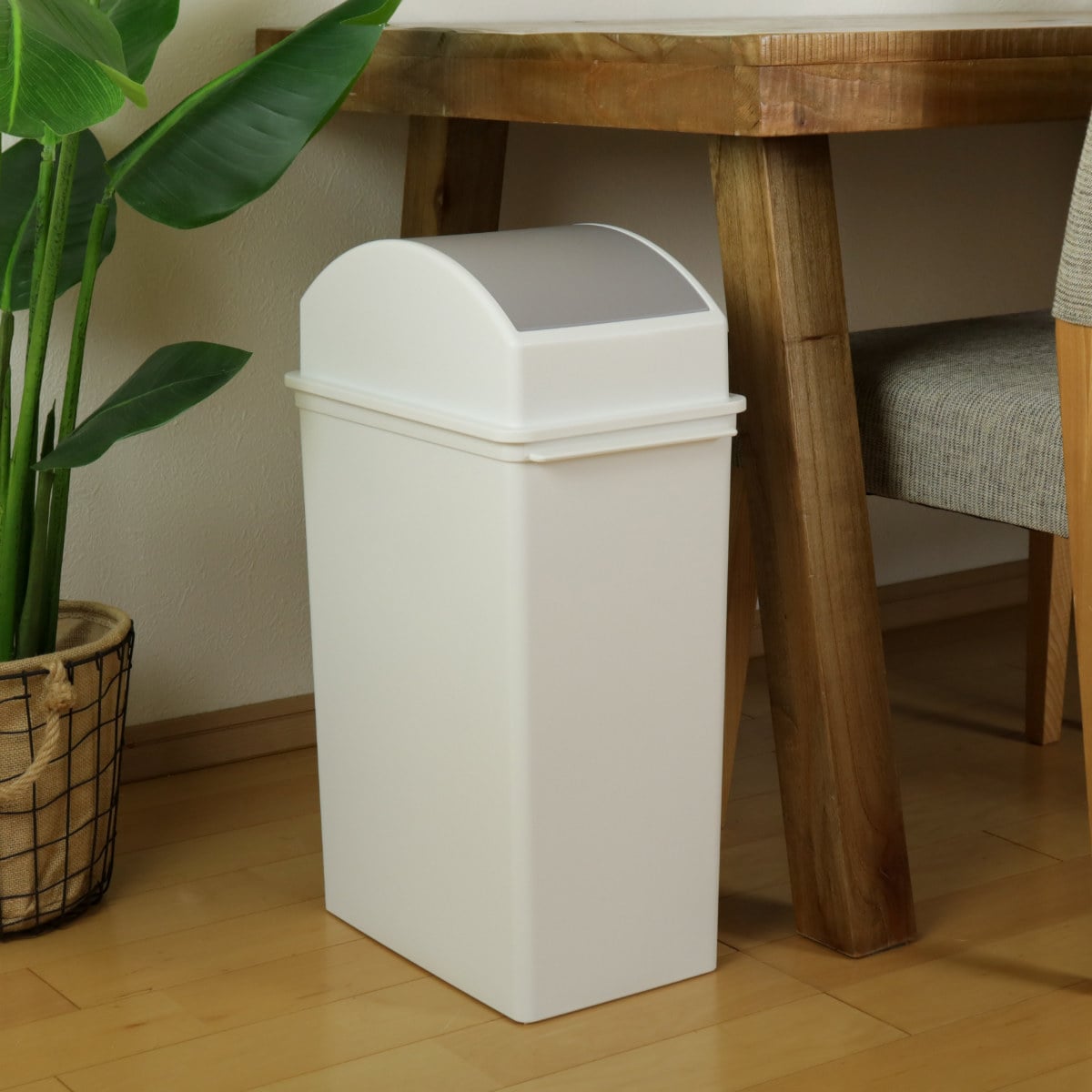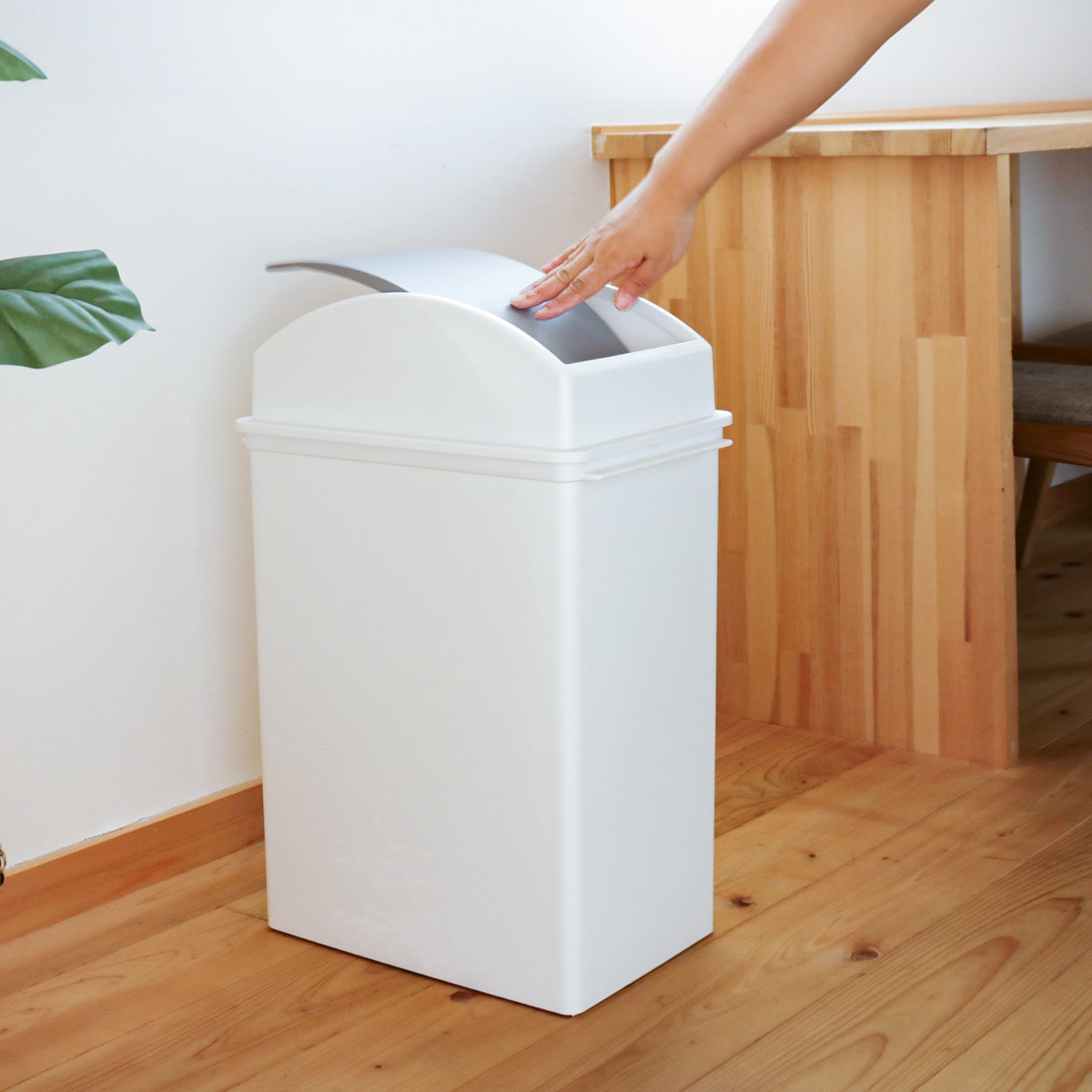 キッチンやリビング、オフィス、洗面所などどこに置いても馴染むシンプルなデザインのゴミ箱です。フタ付きのゴミ箱は捨てたゴミを人目に晒さないでおけるので、人の行き交いの多い場所でもお使いいただけます。