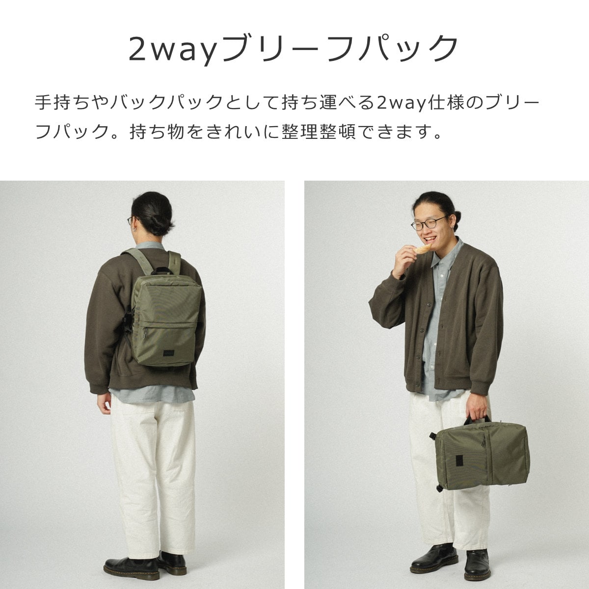 手持ちやバックパックとして持ち運べる2way仕様のブリーフパック。持ち物をきれいに整理整頓できます。