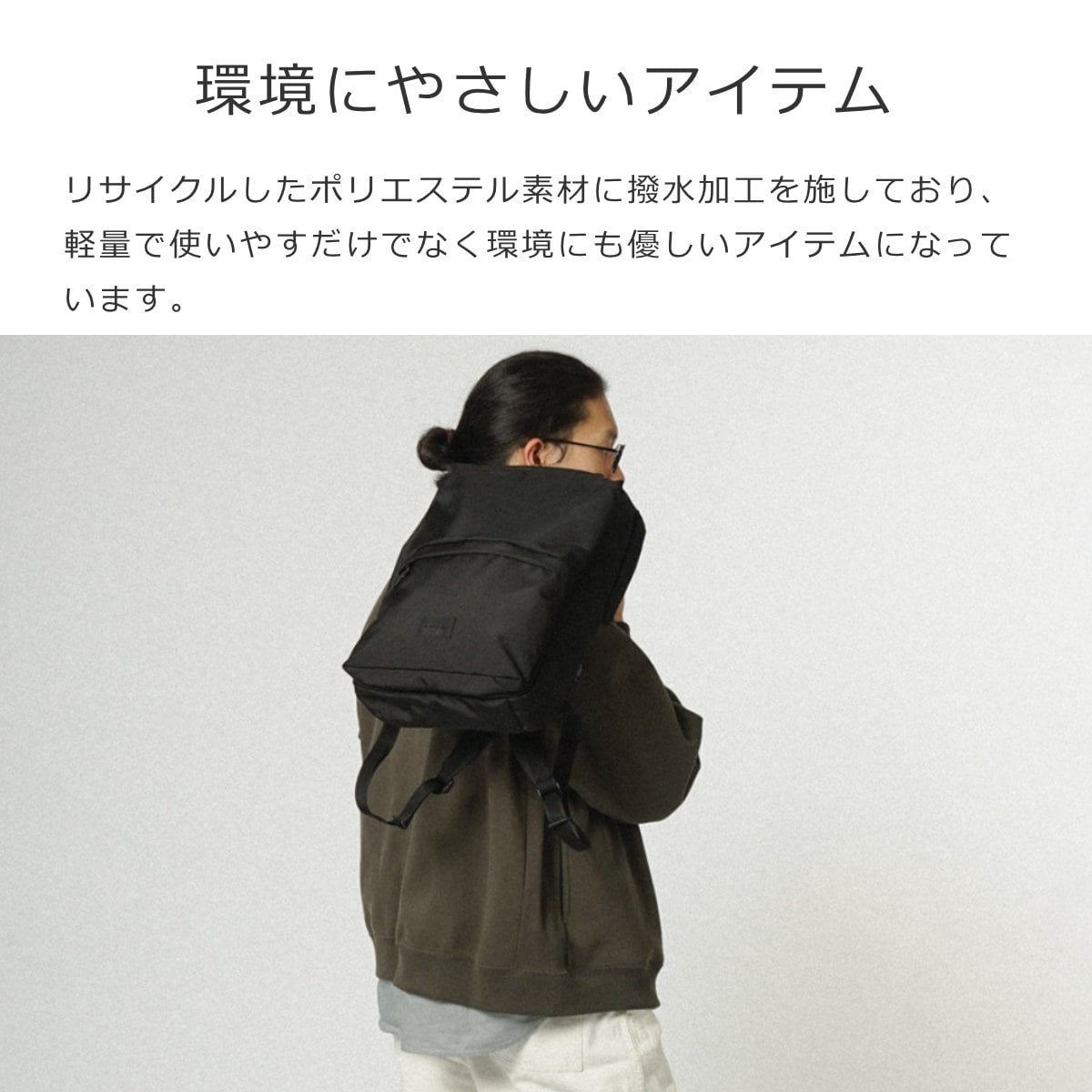 リサイクルしたポリエステル素材を使用しており、軽量で使いやすいだけでなく環境にも優しいアイテムになっています。撥水加工が施されているので、雨の日にも安心です。